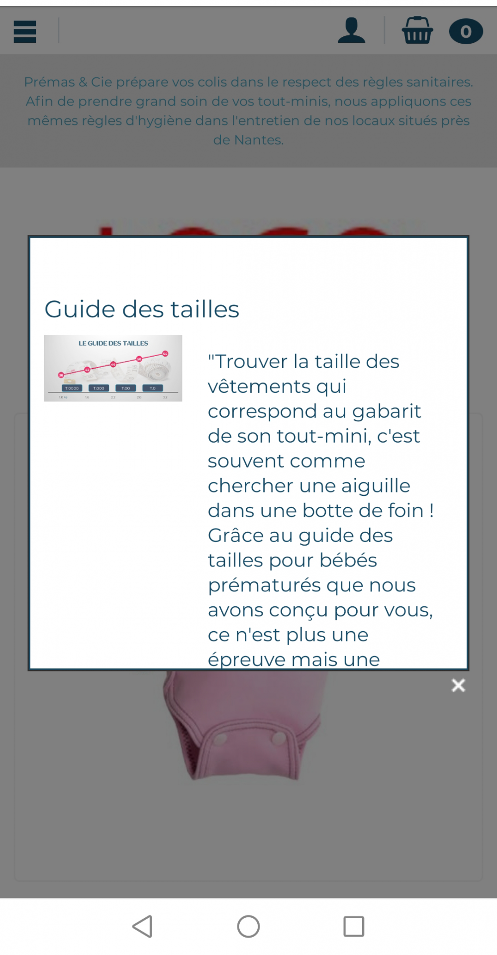 Je rencontre cependant un soucis au niveau de la popup qui s'affiche, celle-ci est immense ! Alors lorsque le guide des tailles est petits, c'est vraiment très laid car nous avons une grande zone blanche