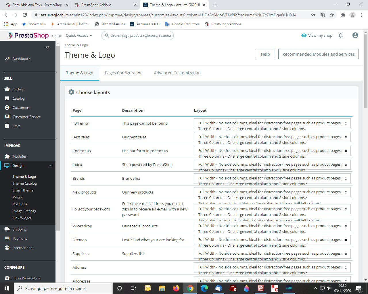 allego due screenshot dove si vede che i menù delle sezioni PERFORMANCE e CHOOSE LAYOUTS non vengono correttamente visualizzati e perciò non modificabili. Ho provato ad entrare con diversi browser (Mozilla, Chrome Windows, Chrome Android, Edge) ma la visualizzazione non cambia.