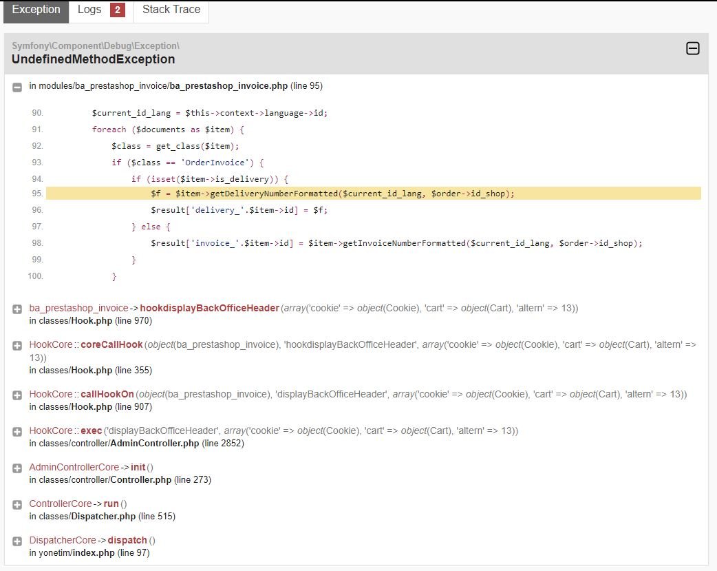 tomerg3 Posted November 5, 2020 Share Posted November 5, 2020 Looks like a bug / issue with the ba_prestashop_invoice module, it's referencing a function that does not exist. It's quite possible that the module needs to add an override file, and it's either not added, or the cache wasn't cleared. Did you try asking the developer of the module? Link to comment Share on other sites More sharing options...