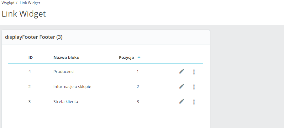 Odpiąłem moduł odpowiadający za informacje o sklepie z uchwytu w stopce (nazwa sklepu, nip, regon, e-mail. etc). Chciałem dzięki temu utworzyć sobie więcej miejsca na kategorie linków.