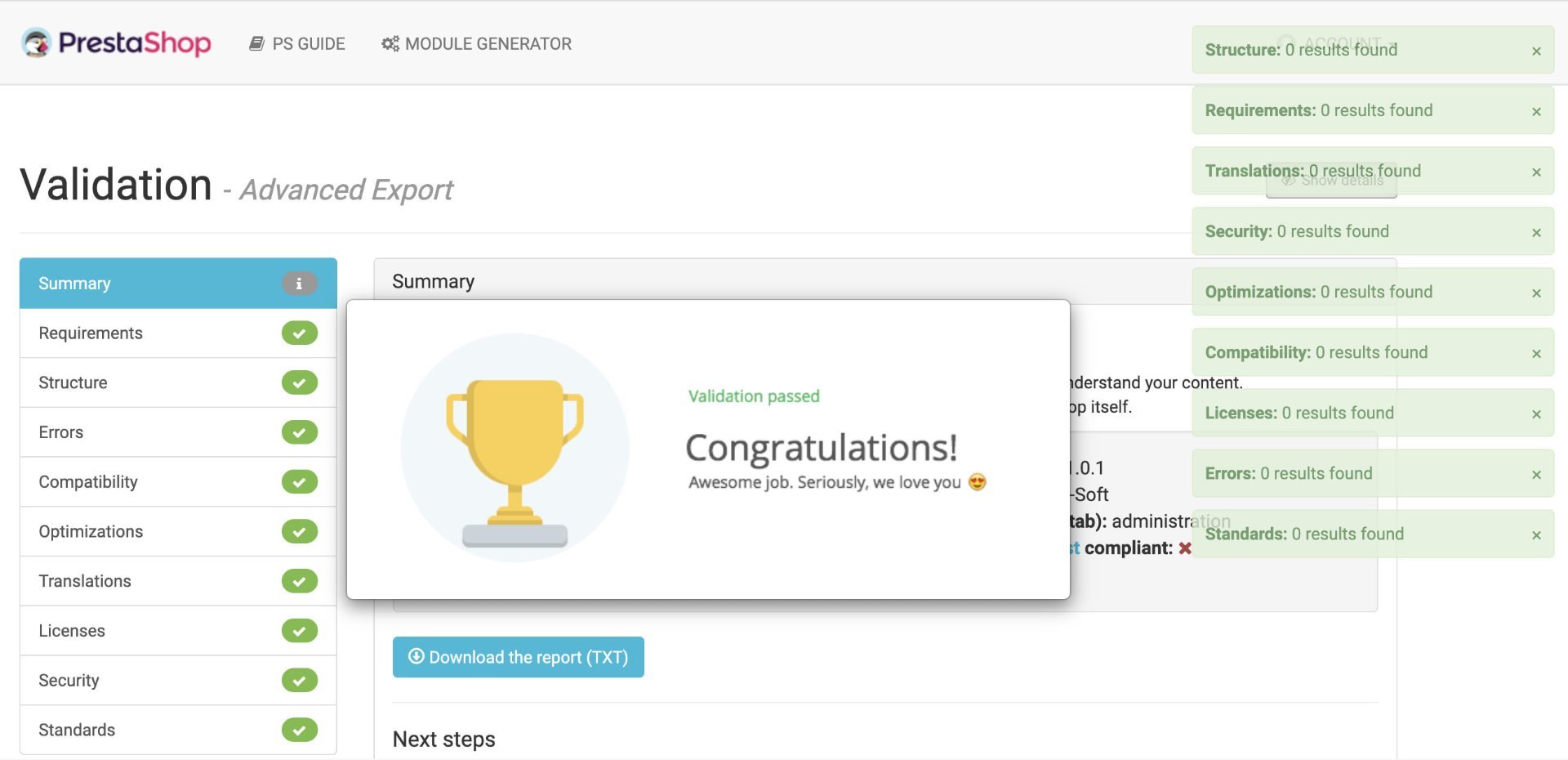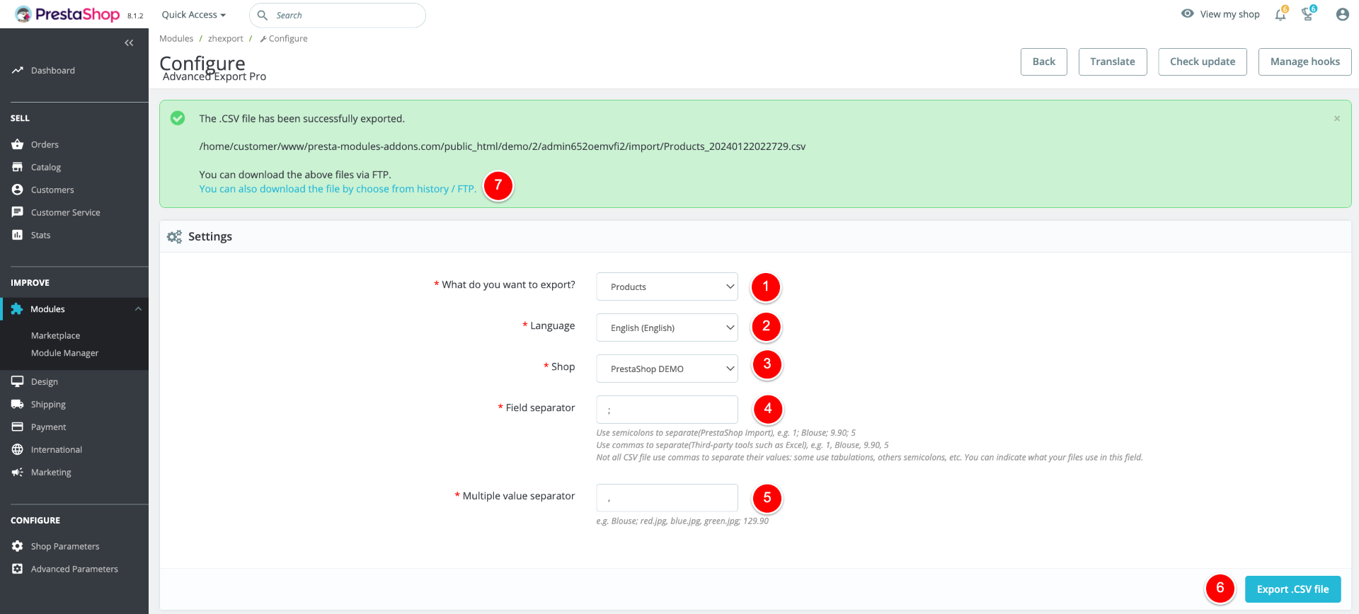 ZHSoft Posted November 6, 2020 Share Posted November 6, 2020 (edited) [MODULE] Advanced CSV Export For 9-in-1 Module - Csv Export Products, Combinations, Customers, Categories, Brands, Suppliers, Alias, Address & Store Contacts Overview PrestaShop has built-in CSV file data import, such as Categories, Products, Combinations, Customers, Address, Brands, Suppliers, Alias, Store Contacts. This plug-in will automatically be compatible with the above formats and export store CSV files. What this module does for you event_available Help save time supporting one-click export of Categories, Products, Combinations, Customers, Address, Brands, Suppliers, Alias, Store Contacts. Perfectly combined with prestashop's built-in import features,export all fields, one-to-one correspondence with imported fields. Other Please visit developer's modules page for other amazing modules: https://addons.prestashop.com/en/2_community-developer?contributor=1197421 Please leave your feedback and rating after using the module. It helps us to make better modules and provide better service to you and others: http://addons.prestashop.com/en/ratings.php Have any ideas how we can improve this module? Just contact us, and we will implement new features in the upcoming releases. Features 1.Export Categories is supported: ID Active (0/1) Name Parent category Root category (0/1) Description Meta title Meta keywords Meta description Rewritten URL Image URL ID / Name of shop 2.Export Products is supported: ID Active (0/1) Name Categories (x,y,z...) Price tax excluded Price tax included Tax rule ID Cost price On sale (0/1) Discount amount Discount percent Discount from (yyyy-mm-dd) Discount to (yyyy-mm-dd) Reference # Supplier reference # Supplier Brand EAN13 UPC Ecotax Width Height Depth Weight Delivery time of in-stock products: Delivery time of out-of-stock products with allowed orders: Quantity Minimal quantity Low stock level Send me an email when the quantity is under this level Visibility Additional shipping cost Unit for base price Base price Summary Description Tags (x,y,z...) Meta title Meta keywords Meta description Rewritten URL Label when in stock Label when backorder allowed Available for order (0 = No, 1 = Yes) Product availability date Product creation date Show price (0 = No, 1 = Yes) Image URLs (x,y,z...) Image alt texts (x,y,z...) Delete existing images (0 = No, 1 = Yes) Feature (Name:Value:Position:Customized) Available online only (0 = No, 1 = Yes) Condition Customizable (0 = No, 1 = Yes) Uploadable files (0 = No, 1 = Yes) Text fields (0 = No, 1 = Yes) Action when out of stock Virtual product (0 = No, 1 = Yes) File URL Number of allowed downloads Expiration date (yyyy-mm-dd) Number of days ID / Name of shop Advanced Stock Management Depends on stock Warehouse Accessories (x,y,z...) 3.Export Combinations is supported: Product ID Product reference Attribute (Name:Type:Position)* Value (Value:Position)* Supplier reference Reference EAN13 UPC Cost price Impact on price Ecotax Quantity Minimal quantity Low stock level Send me an email when the quantity is under this level Impact on weight Default (0 = No, 1 = Yes) Combination availability date Choose among product images by position (1,2,3...) Image URLs (x,y,z...) Image alt texts (x,y,z...) ID / Name of shop Advanced Stock Management Depends on stock Warehouse 4.Export Customers is supported: ID Active (0/1) Titles ID (Mr = 1, Ms = 2, else 0) Email* Password* Birth date (yyyy-mm-dd) Last name* First name* Newsletter (0/1) Partner offers (0/1) Registration date (yyyy-mm-dd) Groups (x,y,z...) Default group ID ID / Name of shop 5.Export Address is supported: ID Alias* Active (0/1) Customer email* Customer ID Brand Supplier Company Last name* First name * Address* Address (2) Zip/postal code* City* Country* State Other Phone Mobile Phone VAT number Identification number 6.Export Brands is supported: ID Active (0/1) Name Description Short description Meta title Meta keywords Meta description Image URL ID / Name of group shop 7.Export Suppliers is supported: ID Active (0/1) Name Description Short description Meta title Meta keywords Meta description Image URL ID / Name of group shop 8.Export Alias is supported: ID Alias* Search* Active 9.Export Store Contacts is supported: ID Active (0/1) Name Address* Address (2) Zip/postal code State City* Country* Latitude* Longitude* Phone Fax Email address Note Hours (x,y,z...) Image URL ID / Name of shop 10.Perfectly combined with prestashop's built-in import features. 11.Multilingual export is supported. 12.Multi-store export is supported. 13.Custom export of CSV separators is supported. 14.Software quality is officially certified by PrestaShop(https://validator.prestashop.com/) What's New in Version 1.0.1(10/09/2020) Code security improvement Support and updates You automatically get 3 months of support for this product. For 90 days after your purchase, you can enjoy technical and feature support, as well as access to updates available for this product. [MODULE] Advanced CSV Export For 9-in-1 Module - Csv Export Products, Combinations, Customers, Categories, Brands, Suppliers, Alias, Address & Store Contacts Edited July 26, 2024 by ZHSoft Add demo picture (see edit history) Link to comment Share on other sites More sharing options...