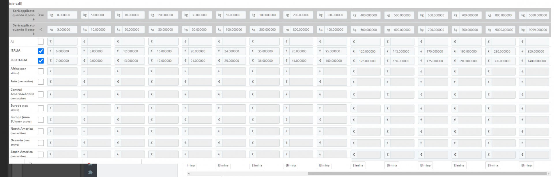 disarci Posted November 6, 2020 Share Posted November 6, 2020 Hai sbagliato le fasce di prezzo, vedrai che se guardi il calcolo del prezzo è sbagliato nella zona sud, o supera la fascia o c'è un buco tra due fasce, non ci sono bug di questo genere che io sappia sulla versione di Presta, fai la prova con 2 corrieri diversi se non li hai fatti, uno legato a nord e uno legato a sud Link to comment Share on other sites More sharing options...