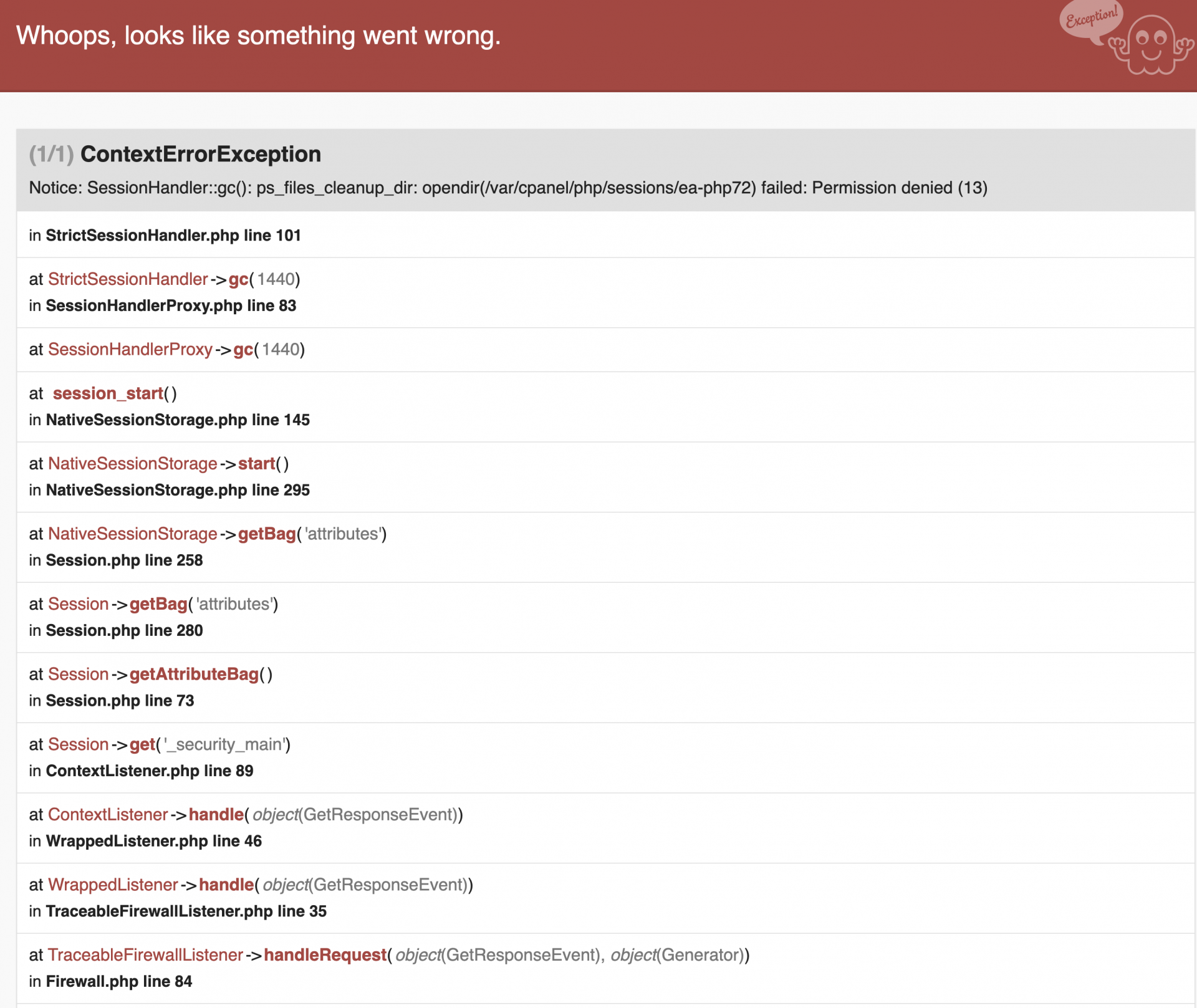 [8] SessionHandler::gc(): ps_files_cleanup_dir: opendir(/var/cpanel/php/sessions/ea-php72) failed: Permission denied (13).