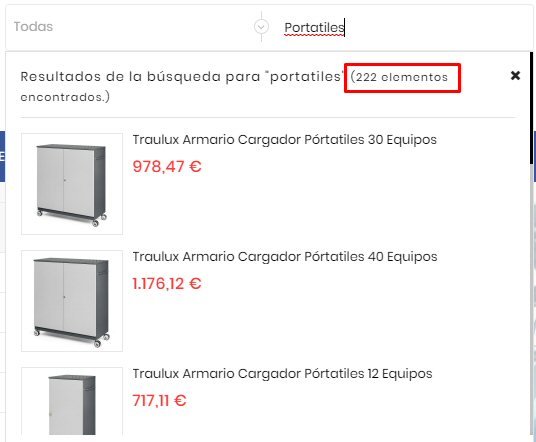 En la búsqueda pone un orden que no obedece al peso ya que tengo más peso en las categorías que en las descripciones, por motivos de origen de los productos, y me saca antes la descripciones que la categoría (imagen1). Dice que encuentra 222 elementos.
