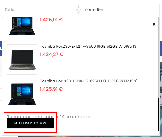 Tengo la santa paciencia de bajar hasta el final (poniéndoselo fácil al usuario -modo ironia off-) y veo que hay productos que quiero pulso el botón  "mostrar todos" (imagen2) y me dice que no encuentra ningún resultado (imagen3).