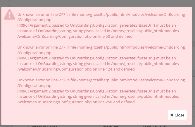 Bequitas Posted November 12, 2020 Share Posted November 12, 2020 (edited) I have version 1.7.6.5 Apparently I'm having an error in the Welcome Module, I don't know what I did wrong. I just updated all pending modules and now I have the following error in BackOffice. How do I correct this error? Do I have to disable any module? Which one?! Thanks in advance. Edited November 12, 2020 by Bequitas (see edit history) Link to comment Share on other sites More sharing options...