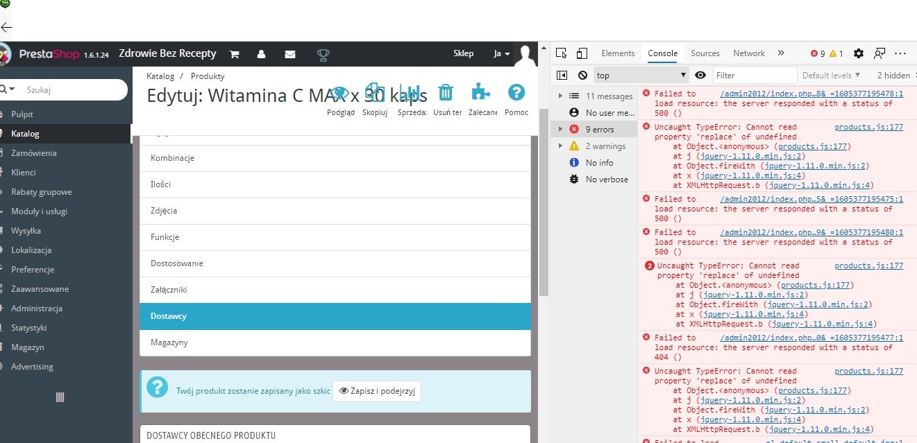 Czy ktoś ma rozwiązanie na kręcące się bez końca kółko zapisu w karcie produktu po stronie paneli admina? ( v. 1.6.1.24 )
