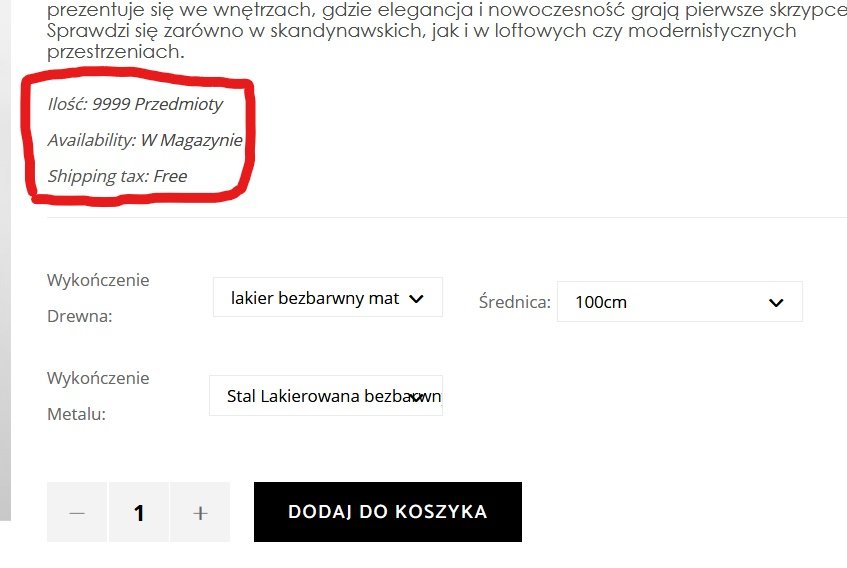 Chciałbym wyłączyć informacje o Dostępności, Koszcie dostawy oraz Ilości dostępnych sztuk danego towaru.