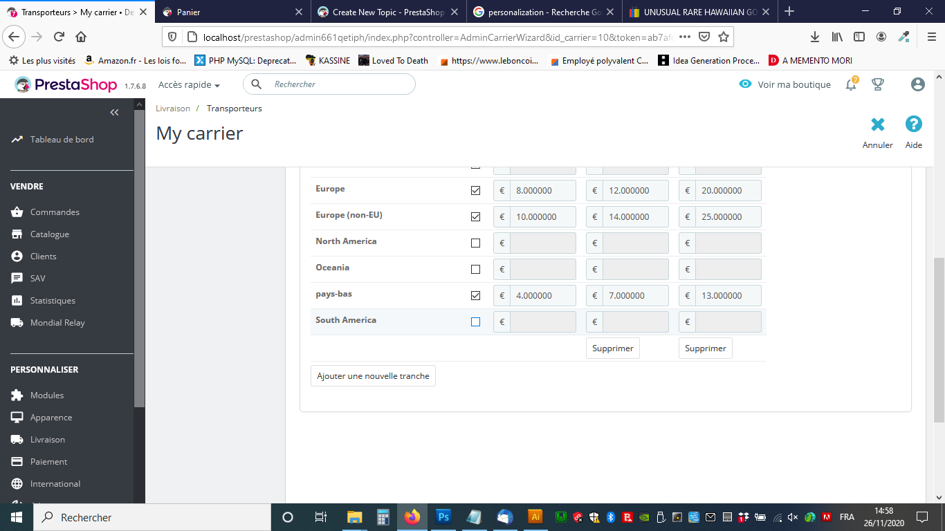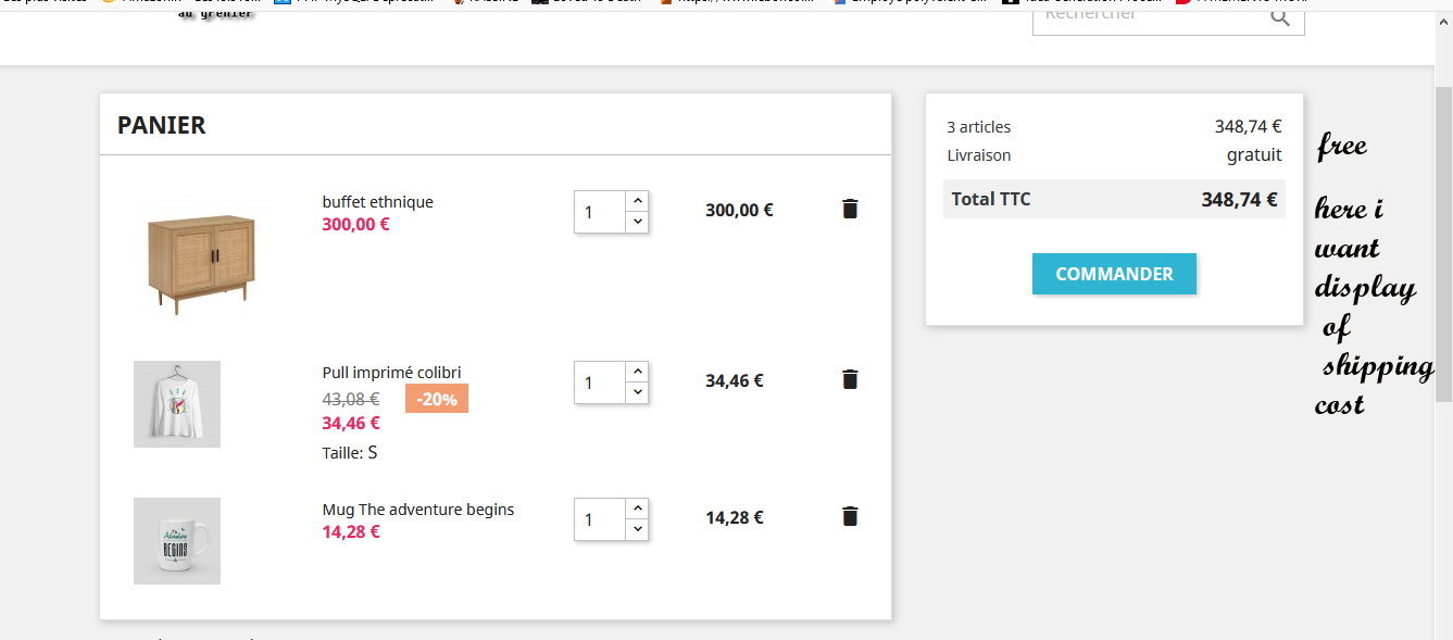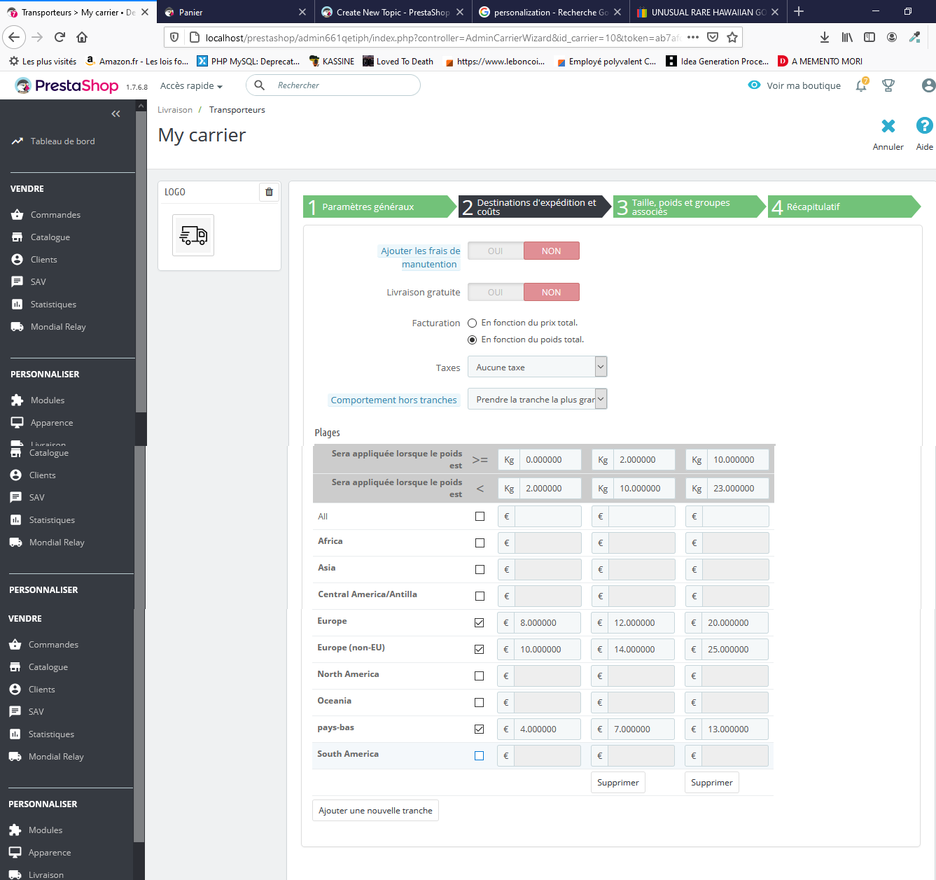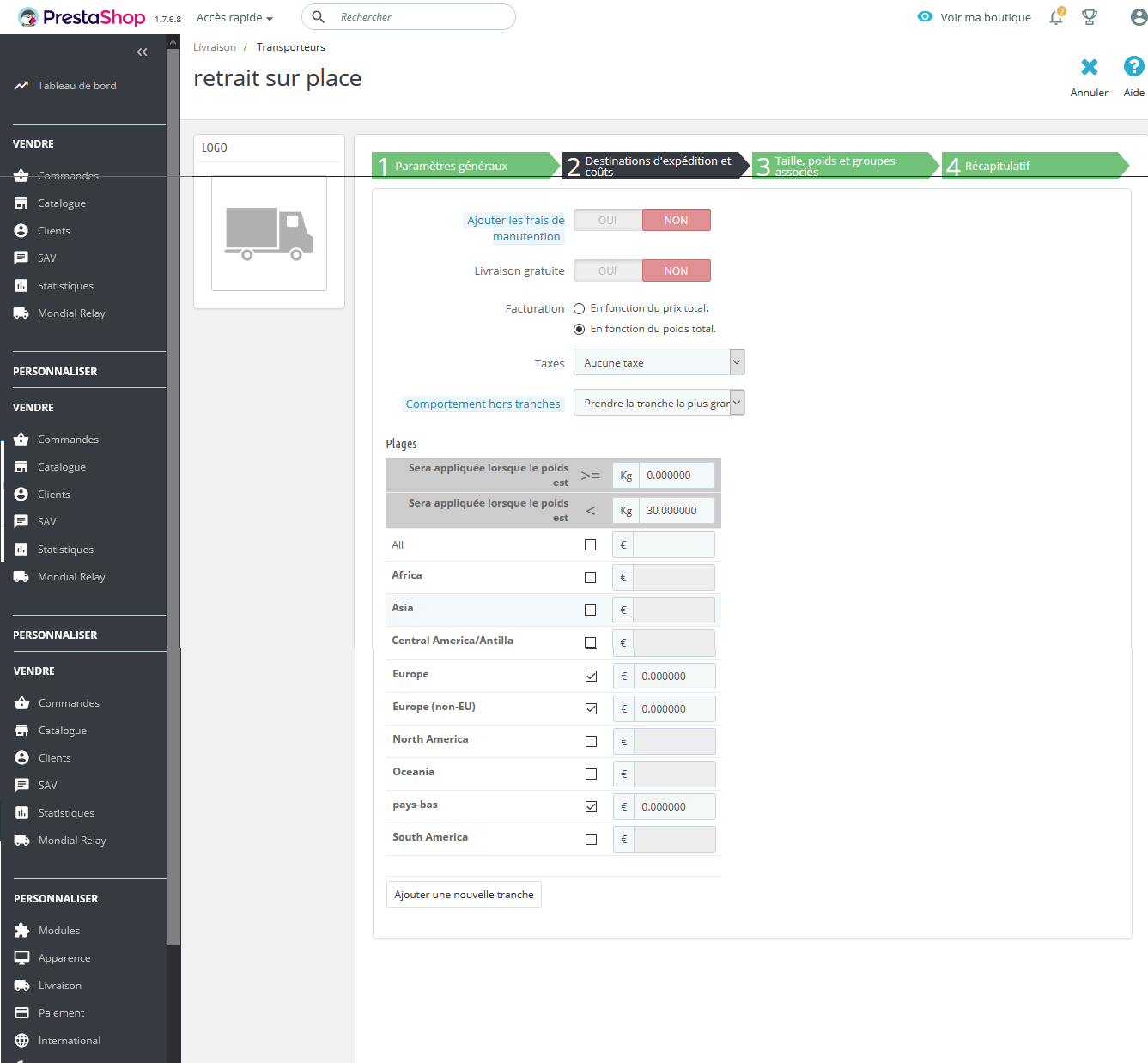 jerrrrrrrry Posted November 26, 2020 Share Posted November 26, 2020 hello i have two carriers i want to display the two on the basket page one is free you can come and take it in the shop one is not free we ship trough a carrier my carrier the two carriers are set up here the retrait sur place my carrier fee are set up thanks for your help Link to comment Share on other sites More sharing options...