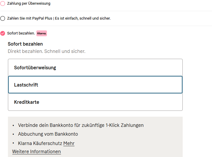 Lilith38 Posted November 30, 2020 Share Posted November 30, 2020 (edited) Hallo ihr Lieben, ich habe folgendes Problem mit dem Internet Explorer. Sobald man Klarna auswählt, wird das Dropdown Menü nicht geöffnet. Bei allen anderen Explorern funktioniert es ohne Probleme. Im Anhang befinden sich 2 Screenshots. Einmal wie es aussehen sollte und der andere wie es im IE aussieht. Weiss jemand wodran das liegt könnte? Vielen Dank Edited November 30, 2020 by Lilith38 edit (see edit history) Link to comment Share on other sites More sharing options...