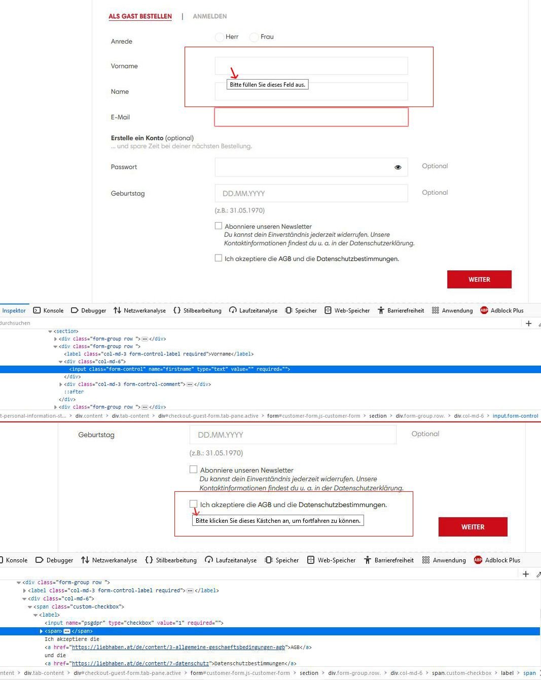 rictools Posted December 5, 2020 Share Posted December 5, 2020 (edited) Gerade mal im offiziellen Mustershop geschaut, obwohl der nur in englisch ist, wird mir auch ein deutscher Text angezeigt. So habe ich außer in Chrome auch in Firefox geschaut und siehe da: der Text ist unterschiedlich, einmal mit und einmal ohne "Bitte"! Der Text wird also nicht von Prestashop, sondern vom Browser bereitgestellt (man kann das aber offenbar (per CSS?) überschreiben, scheint beim Passwort so zu sein). Edited December 5, 2020 by rictools (see edit history) Link to comment Share on other sites More sharing options...