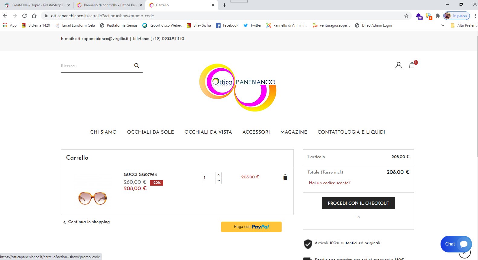 venturapeppe Posted December 2, 2020 Share Posted December 2, 2020 Salve utilizzo prestashop versione 1.7.6.7, ho generato un codice sconto per alcuni clienti, quando vado nel checkout e clicco sulla voce "hai un codice sconto?" non mi appare il campo dove inserire il codice, visualizzo in alto nella barra degli indirizzi il seguente link https://otticapanebianco.it/carrello?action=show#promo-code. da cosa dipende? come posso risolvere grazie? Link to comment Share on other sites More sharing options...