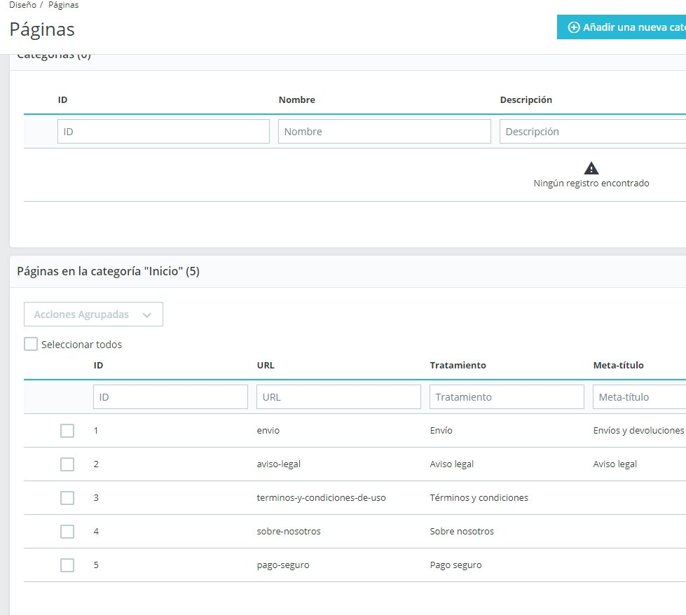 pilucho Posted December 2, 2020 Author Share Posted December 2, 2020 3 minutes ago, aixos said: Hola mira aquí Diseño / Páginas Si lo busque ahi tambien te adjunto la imagen Diseño -> Páginas Páginas en la categoría "Inicio" (5) Envío, Aviso legal, Términos y condiciones, Sobre nosotros, Pago seguro Link to comment Share on other sites More sharing options...