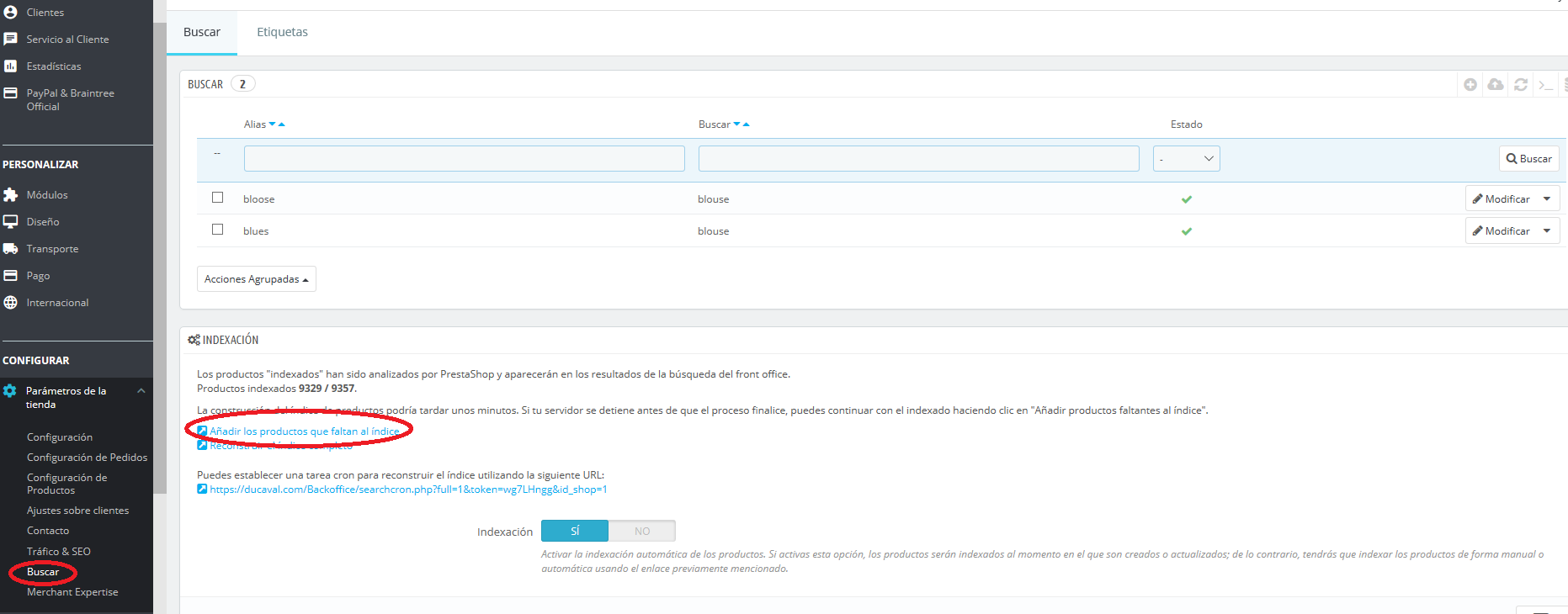 David Aguilar Posted December 2, 2020 Share Posted December 2, 2020 4 hours ago, AntonioPerez said: Hola Estoy teniendo problemas a la hora de indexar los nuevos productos que he añadido al buscador de mi web. Lo he hecho más veces y nunca he tenido problemas, de hecho el error que me devuelve me resulta extraño puesto que toda la web y el BackOffice funcionan perfectamente, pero cuando le doy a "añadir los productos que faltan al índice" me devuelve este error 500 (adjunto capturas de pantalla con las pantallas tanto donde mando la indexación como la del error que me devuelve). ¿Alguien puede ayudarme? he estado leyendo por foros, etc y el error 500 siempre es relacionado con el funcionamiento de la web o que directamente ni les carga, pero no es mi caso, esto solo me pasa cuando voy a indexar los productos nuevos. He probado a cambiar los permisos (actualmente tienen 777 para todos los archivos y carpetas) y sigue el mismo error. Ya no se me ocurre nada más que probar salvo actualizar los módulos que tengo instalados (aunque no le veo relación), de todas maneras antes que nada quería preguntarlo aquí. Cualquier ayuda que se pueda aportar es bienvenida. Gracias de antemano Hola puedes desactivar el modulo: Busqueda por facetas o Facedsearch, e intentar cargar la pagina? Me interesaria saber que es lo que te esta mostrando ese error, puedes encender el modo depuracion en PARAMETROS AVANZADOS>RENDIMIENTO para ver que errores te muestra. Saludos Link to comment Share on other sites More sharing options...