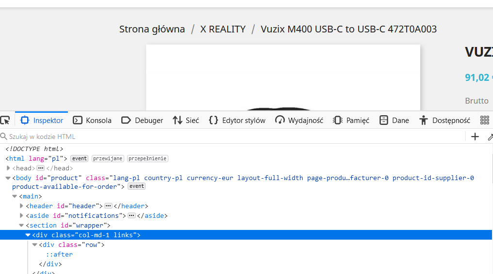 - strona produktu: zdjęcie "uciekło" na prawo, a elementy ceny i opisu są po lewej poniżej, tak jakby przerzucone do kolejnej linijki: