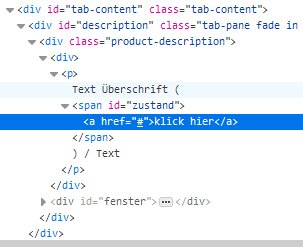 <p>Text Überschrift (<span id="zustand"><a href="#">klick hier</a></span>) / Text</p>