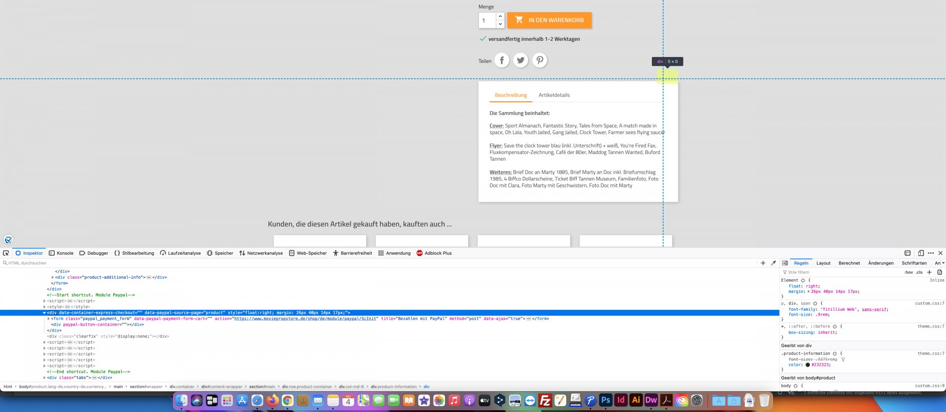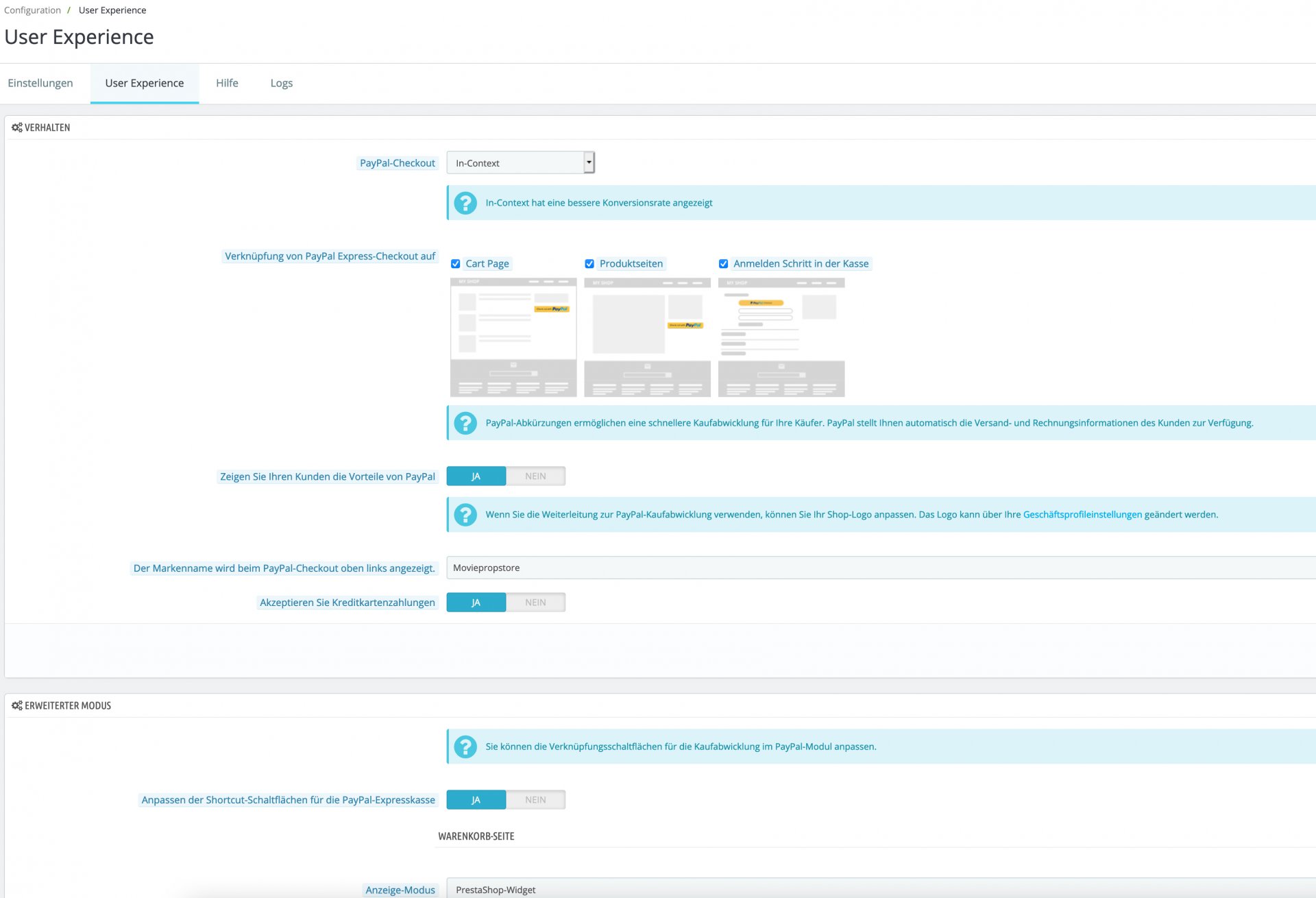 Heikman Posted December 4, 2020 Share Posted December 4, 2020 (edited) ich nutze Prestashop 1.7.7.0 und habe bereits seit einigen Wochen das Problem (auch mit PS 1.7.6.8 und 1.7.6.9), dass der Paypal-Express Button sowohl auf Artikelseiten, als auch auf der Warenkorbseite fehlt. In den Einstellungen ist alles aktiviert (siehe Anhang). Wenn ich den Quelltext untersuche, taucht dort auch der Paypal-Button auf. Er wird aber nicht angezeigt, siehe Anhang 2. Außerdem hab ich auf dem Server nachgesehen, es gibt bei mir keine "ScInit" im Paypal-Modulordner. Wäre sehr dankbar für jede Hilfe. Edited December 4, 2020 by Heikman (see edit history) Link to comment Share on other sites More sharing options...