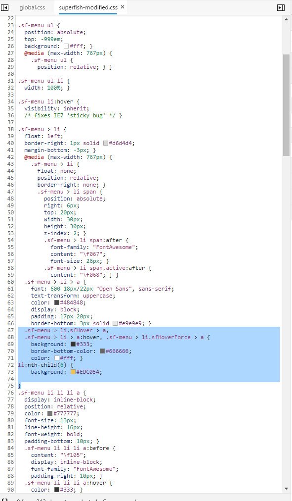dodałem nth-child(6)  przed .sf-menu ale nic się nie zmieniło.
