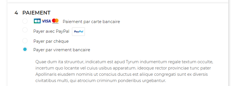 Alexaa Posted December 10, 2020 Share Posted December 10, 2020 Bonjour à tous, De la même manière que le choix de paiement par chèque ou par virement, je souhaite qu'une zone de texte s'ouvre lors de la sélection des autres modes paiements, comme CB et Paypal sur l'exemple en image. Je ne vois pas du tout comment attaquer cela. Comment puis-je procéder ? (Prestashop 1.7) Grand merci à vous ! Link to comment Share on other sites More sharing options...