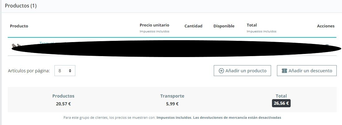 rjaenalfaro Posted December 10, 2020 Share Posted December 10, 2020 Buenas tardes, Quiero añadir una columna de "precio unitario impuestos excluidos" en el detalle de los pedidos para que la muestre a la hora de imprimir el pedido. Por defecto la versión 1.7.7. muestra el precio unitario con impuestos incluidos pero no muestra el precio sin IVA. ¿Cómo puedo hacerlo para mostrar esa columna? Gracias. Link to comment Share on other sites More sharing options...