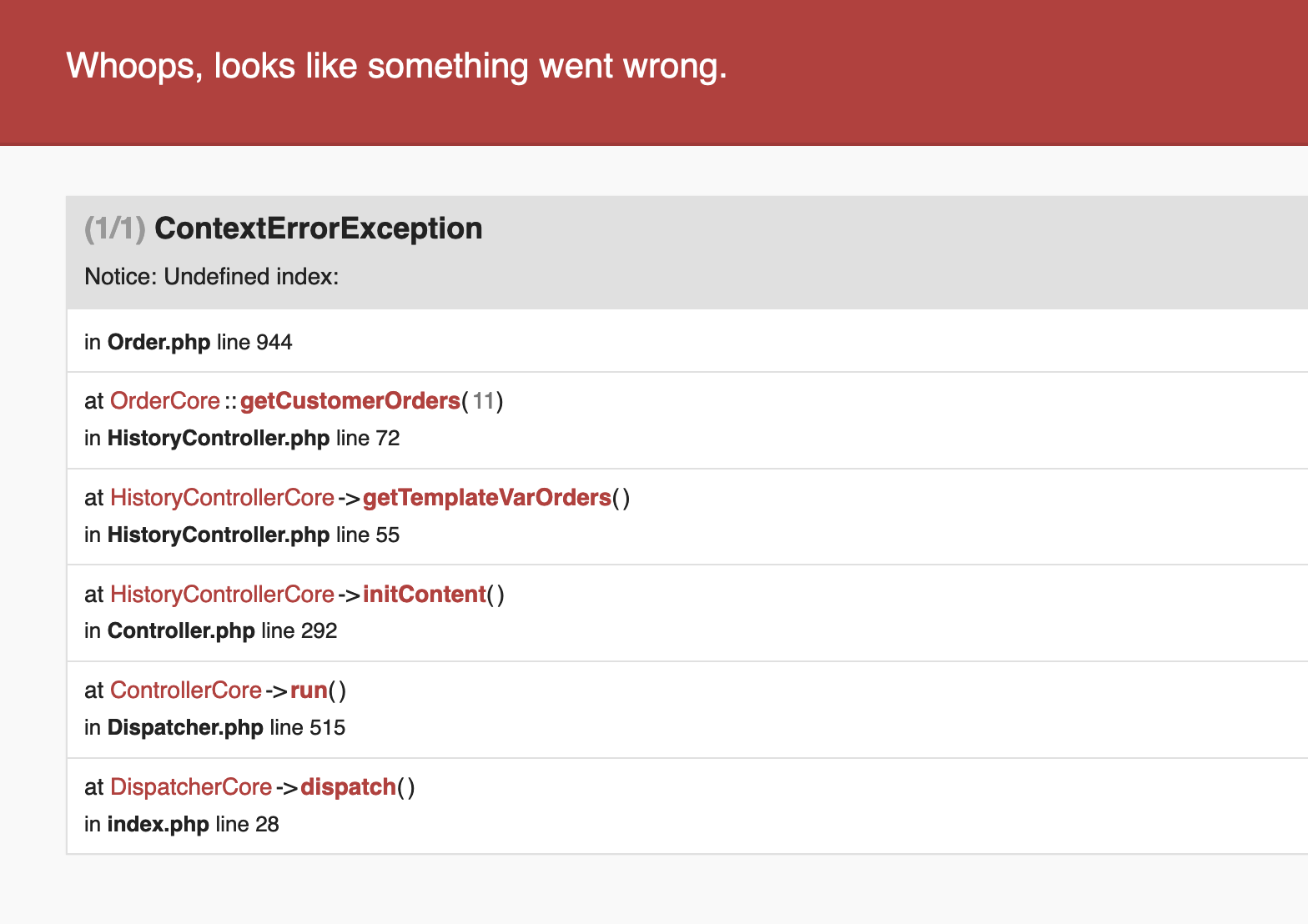When store is in Debug Mode ON i get an error when try to access Order history form user panel.