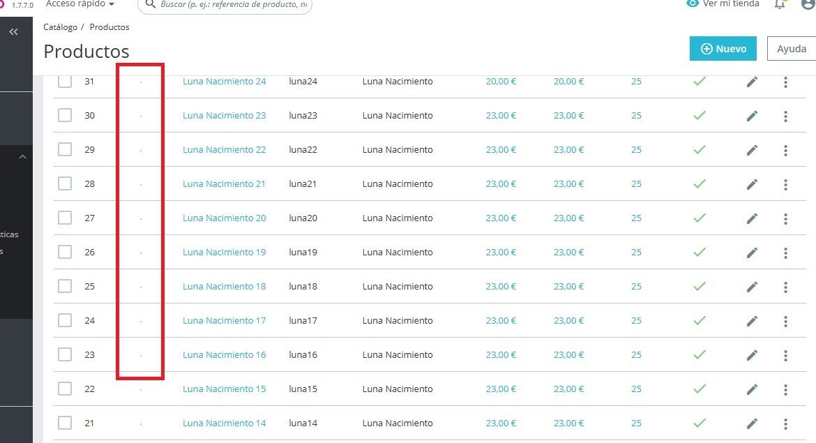 Vori Posted December 17, 2020 Share Posted December 17, 2020 En Back Office productos, al añadir nuevos productos no me sale la imagen en miniatura, sale un punto en su lugar y al pulsar con el raton accede al producto y la imagen grande esta corecta, sucede en todos los productos y solo en el blackoffice. Link to comment Share on other sites More sharing options...