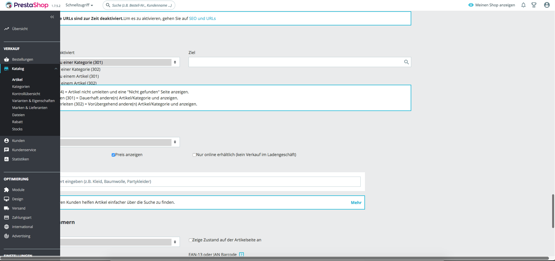 Nur habe ich das Problem, dass ich keinerlei Artikel anlegen odere ändern kann.