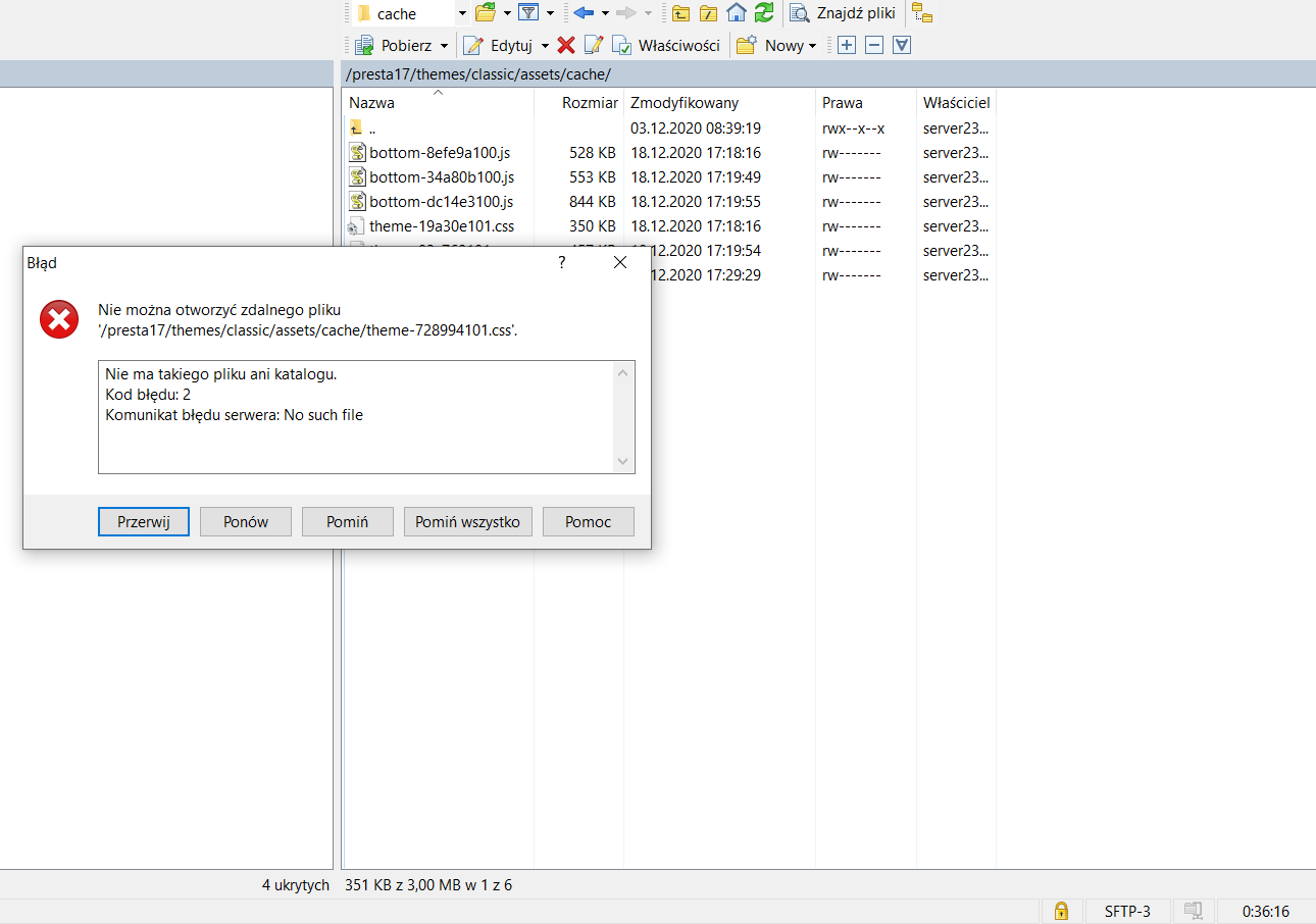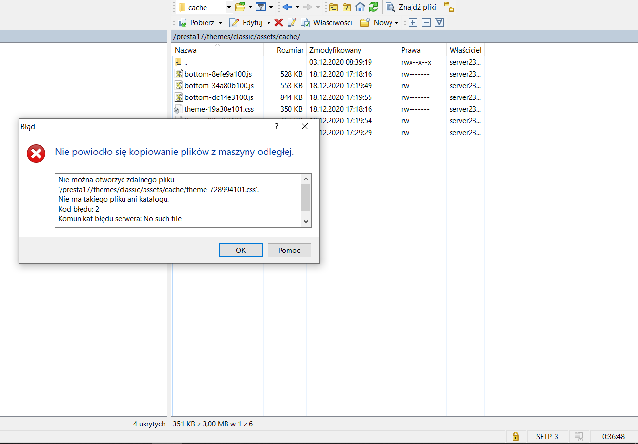Witam, niestety dziś przy próbie wejścia w pliki asset a dokładniej w folder cache zaczęły dziać się dziwne rzeczy, szczerze nawet nie zdążyłam cokolwiek w nich zrobić bo po kliknięciu w każdy z plików zaczęły wyskakiwać błędy. Dodam że na drugim sklepie na serwerze wszystko odpala się bez problemów w plikach. Czy jest jakaś opcja to naprawić, żeby się prawidłowo wszystko wyświetlało? Stronie nic nie dolega z tego co widzę, jednak kto wie..