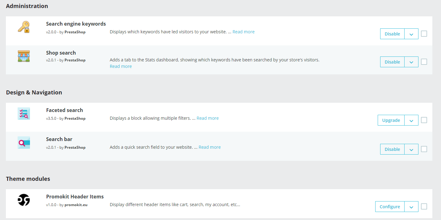 mingxp Posted December 22, 2020 Author Share Posted December 22, 2020 Thank you for your reply. Please find below my answers: 1. On the Alysum system status tab, it has following information Theme "Alysum" v.5.5.1 Theme Settings v.2.0.0 prestashop:1.7.6.7 php_version:7.2.33 memory_limit:512M allow_url_fopen:1 CURL: check_circle_outline DOM: check_circle_outline Fileinfo: check_circle_outline GD: check_circle_outline Intl: check_circle_outline Zip: check_circle_outline 2. Please see attached file, when did search terms on module it brings these modules: 3. Ok.I will to developer Fred. Link to comment Share on other sites More sharing options...