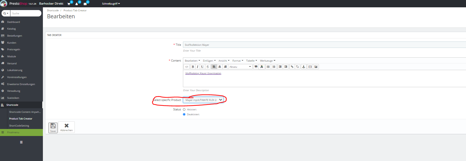 ich wollte den Product Tab ändern da momentan bei jedem meiner Artikel im Shop der gleiche Tab angezeigt wird.