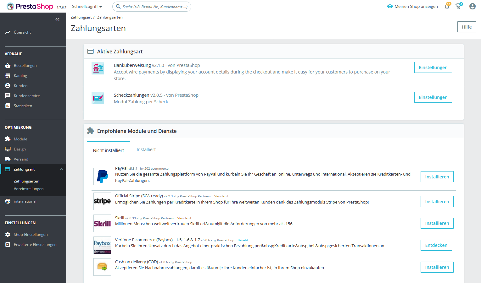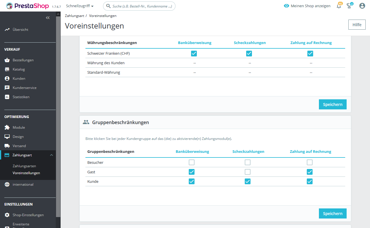 Ich habe für einen Prestashop (1.7.6.7) drei Zahlungsarten definiert. Dafür habe ich zwei Prestashop-Module und ein Addon von Silbersaiten installiert. Und zwar Banküberweisung, Scheckzahlung und Zahlung auf Rechnung. In meinen Screenshots kann man sehen wie diese konfiguriert sind.