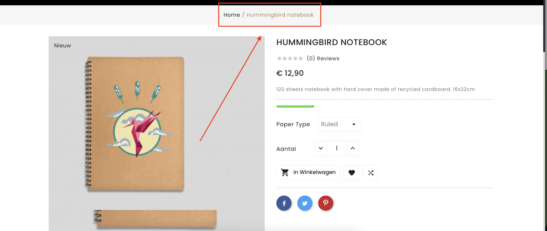 Is de doelstelling dat deze breadcrumb op iedere pagina verdwijnt of alleen op de product pagina?