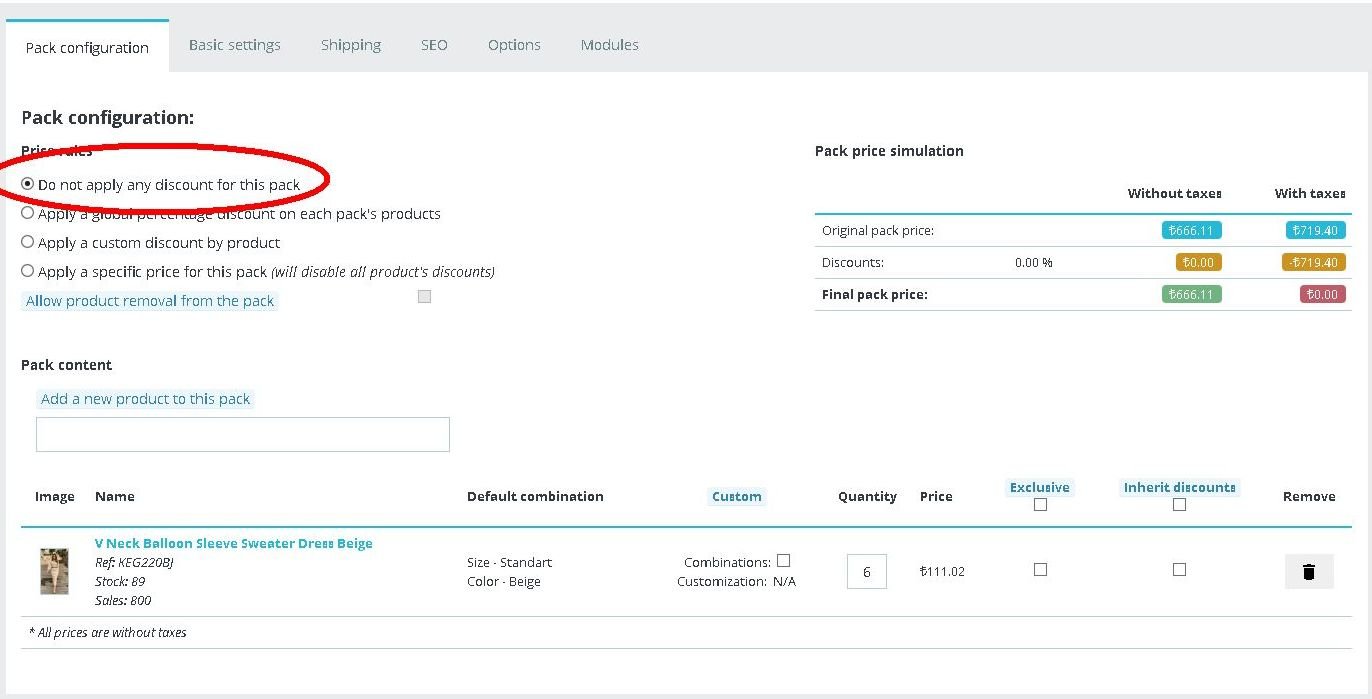 Although I selected the option "Do not apply any discount for this pack", it defines discount as much as the package price itself.