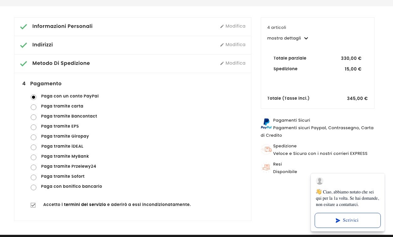 Vito1202 Posted January 3, 2021 Share Posted January 3, 2021 Salve a tutti. Ho un problema con il mio Store. In sostanza ho configurato tutto ma quando un cliente (inglese) prova ad effettuare un pagamento, si blocca con una schermata che non mostra le immagini che ho inserito io. Ho provato ad effettuare un ordine e pagare poi con paypal e tutto funziona ma non all'estero. Premetto che ho selezionato tutti i paesi per il pagamento tramite prestashop checkout. Prestashop versione 1.7.7 Utilizzo Prestashop Checkout Vi allego le foto, la prima che riporta le immagini è la mia ed è quella che funziona. La seconda è quella inviatami dal cliente. Cosa sbaglio? Link to comment Share on other sites More sharing options...