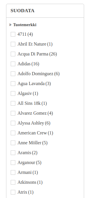 Alex Posted January 4, 2021 Share Posted January 4, 2021 Iam using pretashop 1.7.6.7 and sidebar showing brands. I need the length of this section limited, maybe add some filter. Is this possible? or need to purchase any addon? Link to comment Share on other sites More sharing options...