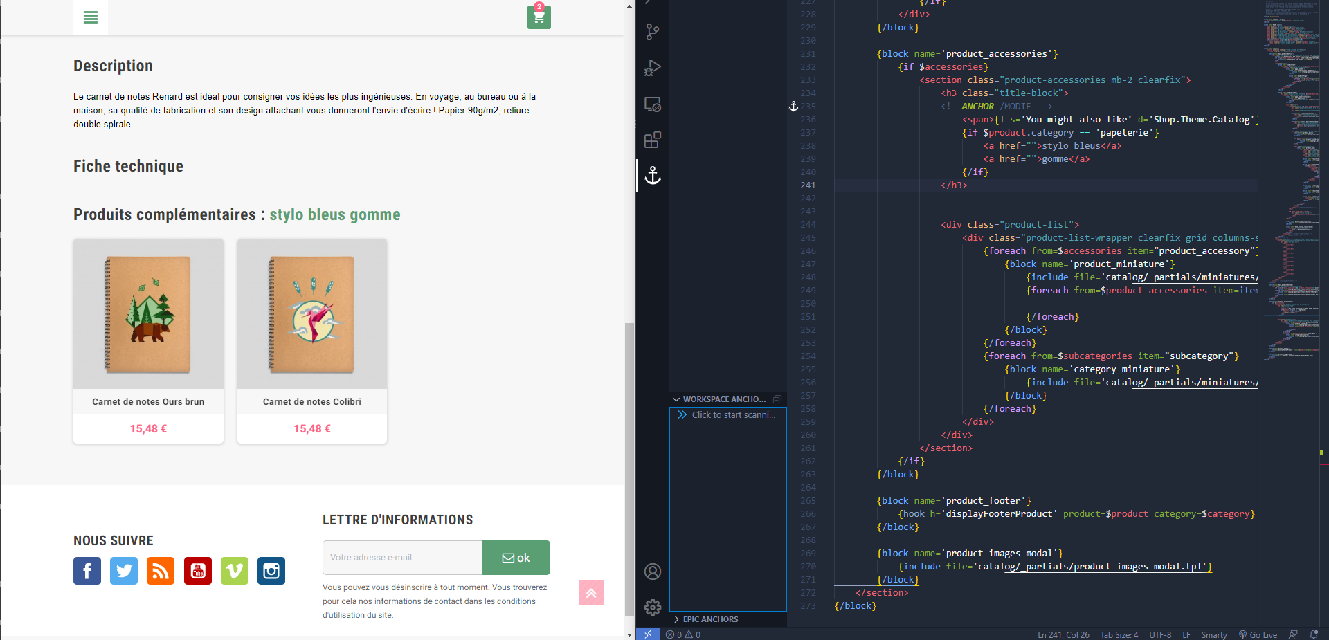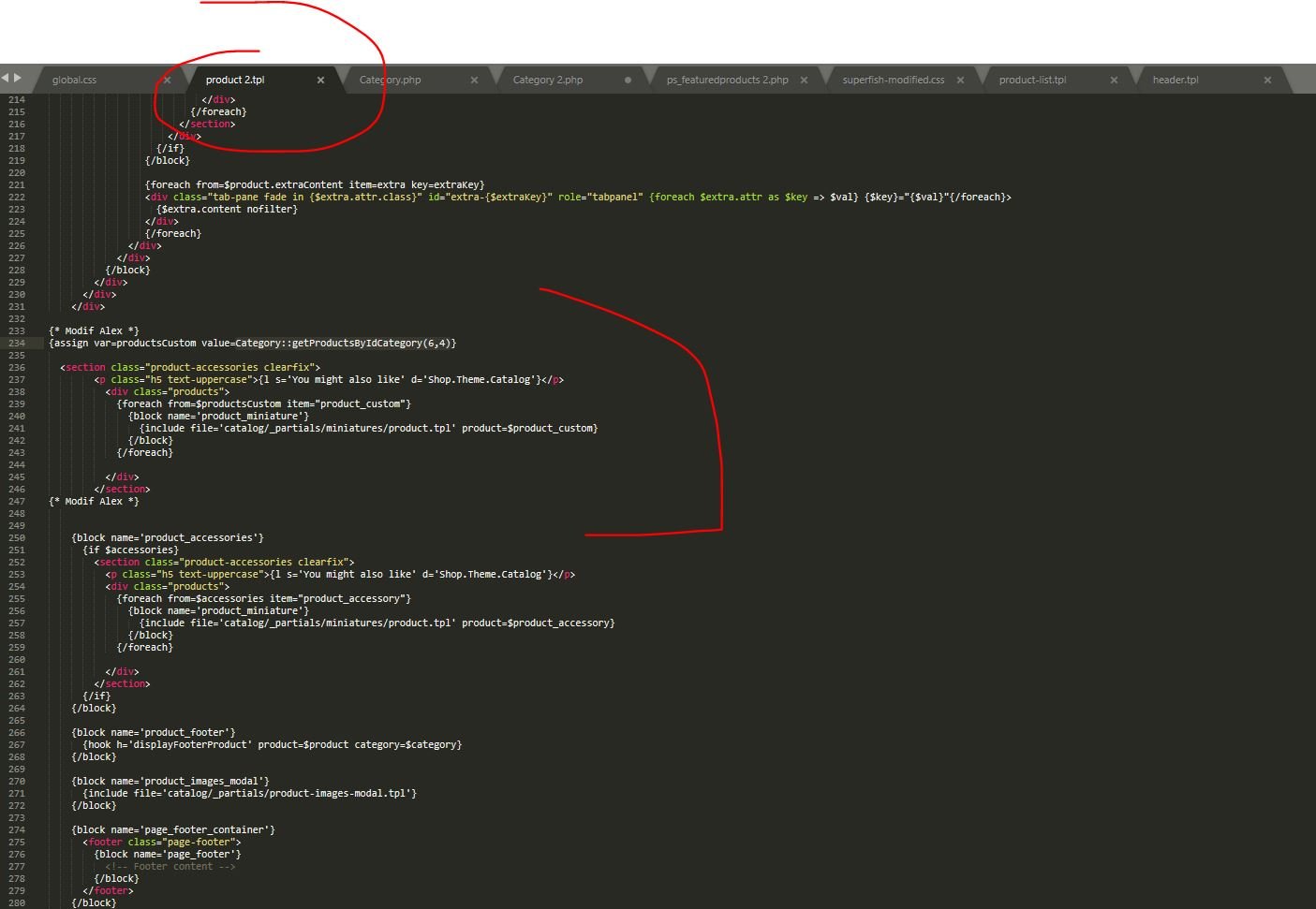 Dragsun Posted January 5, 2021 Share Posted January 5, 2021 Bonjour, J'essaies d'afficher tout les produits correspondants a une catégorie, a la place des produits complémentaires. Exemple, je suis sur la page des cahier et je souhaites afficher toute la catégorie stylo mais seulement les bleus. (Les produits ont déjà leurs catégorie) et j'utilises actuellement ce code : {foreach from=$subcategories item="subcategory"} {block name='category_miniature'} {include file='catalog/_partials/miniatures/subcategory.tpl' subcategory=$subcategory} {/block} {/foreach} mais a ce que j'ai compris, je n'ai pas la variable $subcategories d'initialisée. Ma question est donc la suivante sachant que je travailles sur ce dossier : templates\catalog\product.tpl Où dois-je rajouter, et surtout quel code, pour que je reçoives le $subcategories de mon product.tpl, mes stylos bleus ? merci a vous et bonne journée et bonne année ! Link to comment Share on other sites More sharing options...