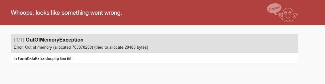 Hugh1975 Posted January 8, 2021 Author Share Posted January 8, 2021 When I activate the debug mode I get this when I try to modify a product (1/1) OutOfMemoryException Error: Out of memory (allocated 703070208) (tried to allocate 20480 bytes) in FormDataExtractor.php line 55 Link to comment Share on other sites More sharing options...