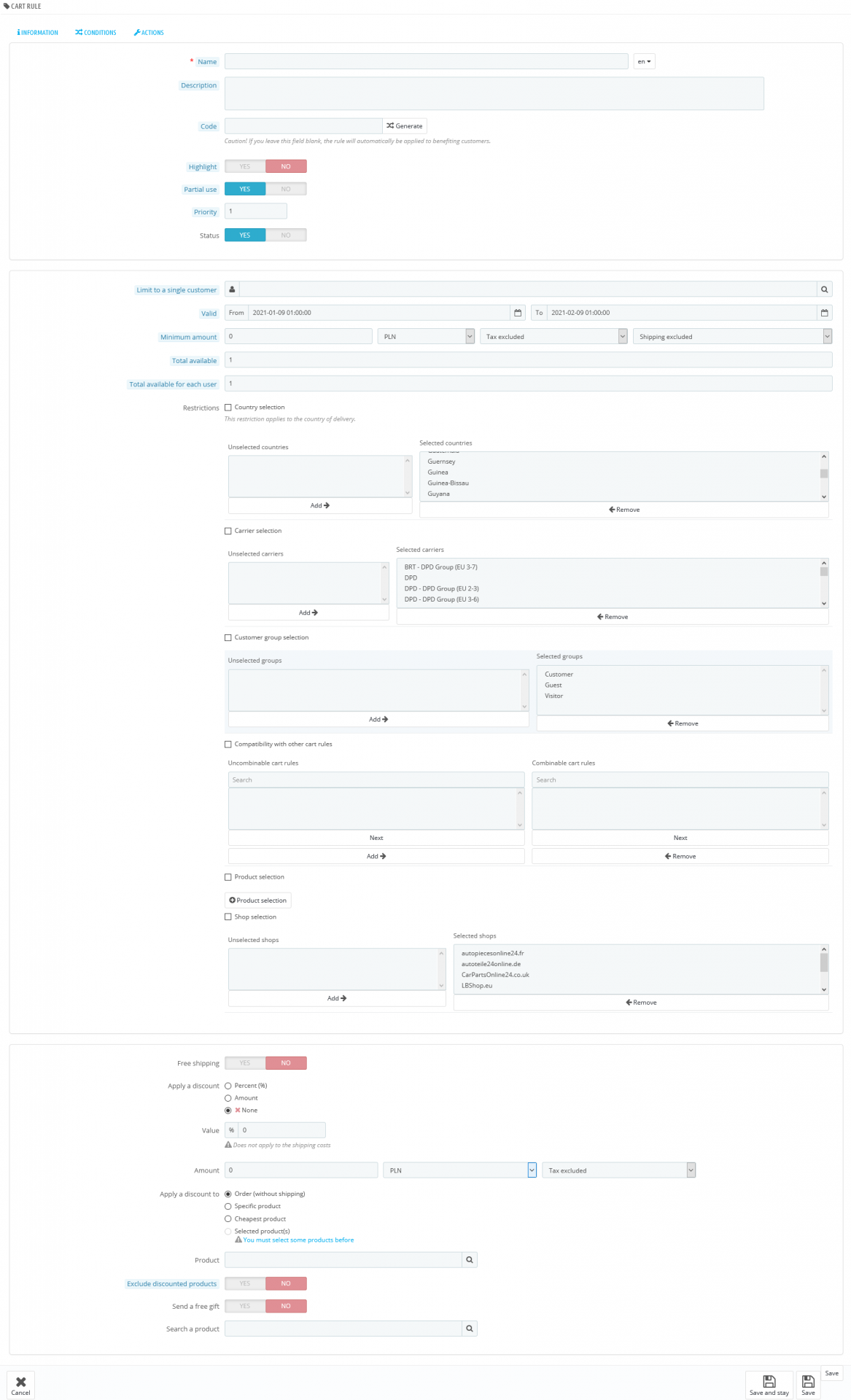 nestor44 Posted January 9, 2021 Share Posted January 9, 2021 Hello, I wanted to create a discount code for a customer and I have noticed that I have noticed that Cart Rules section is not working properly. All 3 sections (Information, Conditions, Actions) are appearing on one page (take a look on the attached screenshot) instead of being divided into 3 separate sections. Some of the buttons are not working anymore (like Generate button or calendar buttons). Also at the bottom save buttons are not working. It's like something happened with the CSS. I have cleared cache, cleared browser cache, checked on a different and unused browser, remove manually all files in var/cache category, replaced all files in admin folder with the the files from freshly downloaded PS. Nothing helped. I do not know where to look for the problem anymore. Did anyone occured the same problem and fixed it somehow? My PS i 1.7.6.8, php version 7.2 Link to comment Share on other sites More sharing options...