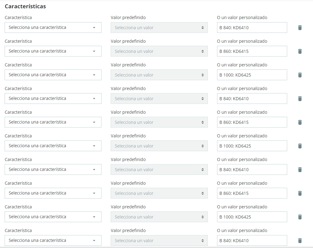 CastelaoSL Posted February 4, 2021 Author Share Posted February 4, 2021 19 hours ago, Servicios MC said: Buenas, veo que tienes características repetidas, como por ejemplo veo 3 veces la referencia del fabricante. Eso es que lo habéis dado de alta mal creando 3 veces la misma característica. Solo tienes que meterte en combinaciones y eliminar las que no valgan. Te he contestado al otro post, pásate por mi página y miramos todo. Saludos. Ana Gracias por la respuesta, Ana. Nosotros solo hemos creado 1 vez la característica "referencia del fabricante", las demás multiplicaciones de esa característica se hicieron solas. Ahora mismo no puedo borrar ni modificar nada de estos productos porque me da error al guardar los cambios. Link to comment Share on other sites More sharing options...