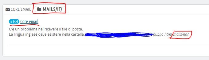 Prestashop sembra cercare le core mail nella cartella /mails/it ma in realtà le cerca in mail/en (vedi immagine) dando errore e trovando 0 core emails perché mails/en non esiste.