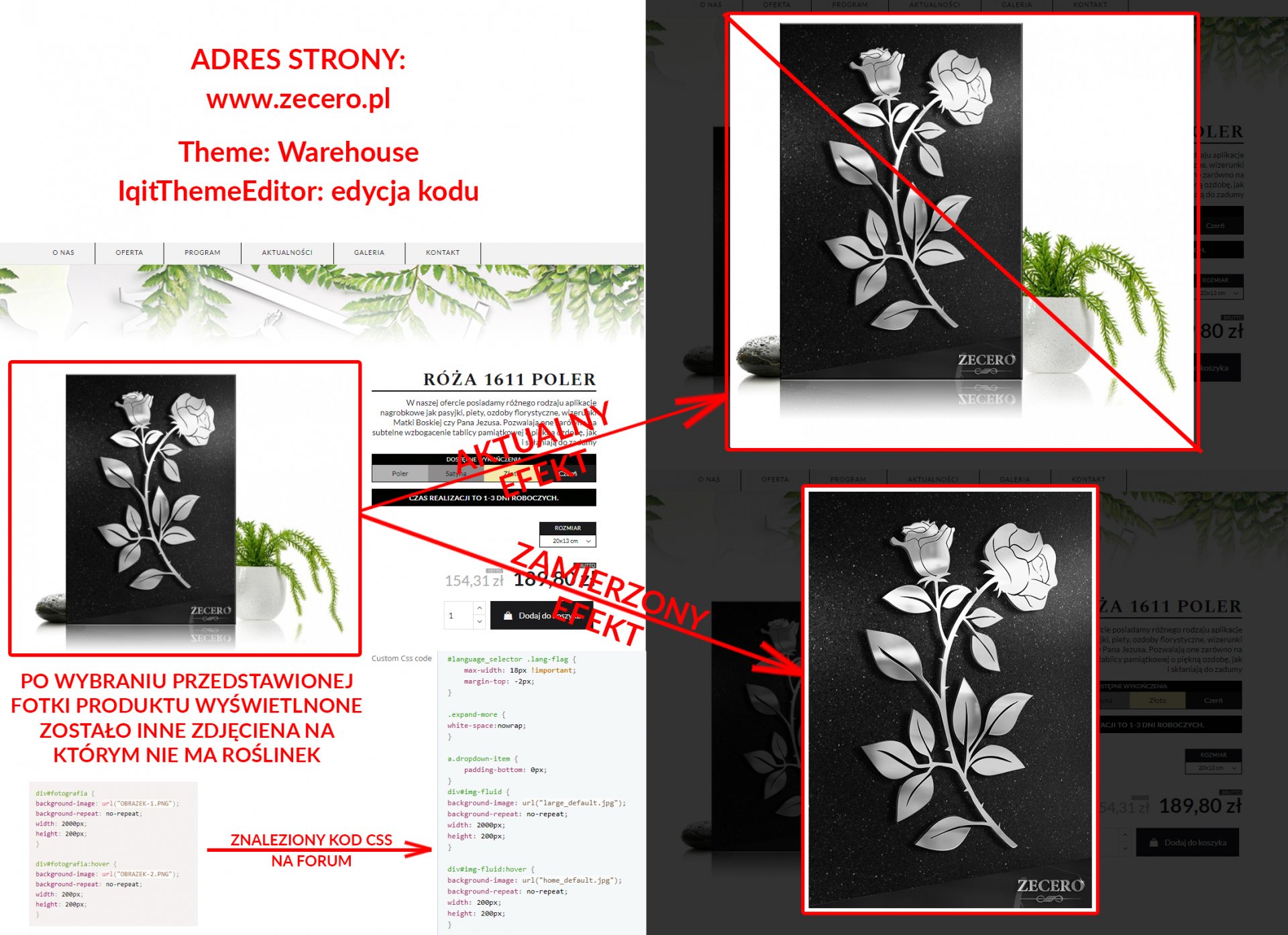 ostatnio podczas aktualizacji produktów na naszej stronie wpadłem na pewien pomysł aby przy tym zmienić jedną rzecz, która wykonana przez programistów nie działa szczególnie dobrze. Chodzi konkretniej o zdjęcie na podstronie z produktem. W momencie kliknięcia na fotki produktu wyświetlana jest ona w powiększeniu jednakże zastanawiam się czy jest możliwość, że po kliknięciu na fotkę zamiast obrazka widocznego na stronie wyświetlane zostaje inne zdjęcie (jak na załączonych screenach). Wiem że istnieje możliwość dodania grafiki stałej pod zdjęciem jednakże na naszej stronie fotki mają rożny format. Dodatkowo na jednym forum znalazłem kod CSS który wygląda następująco:
