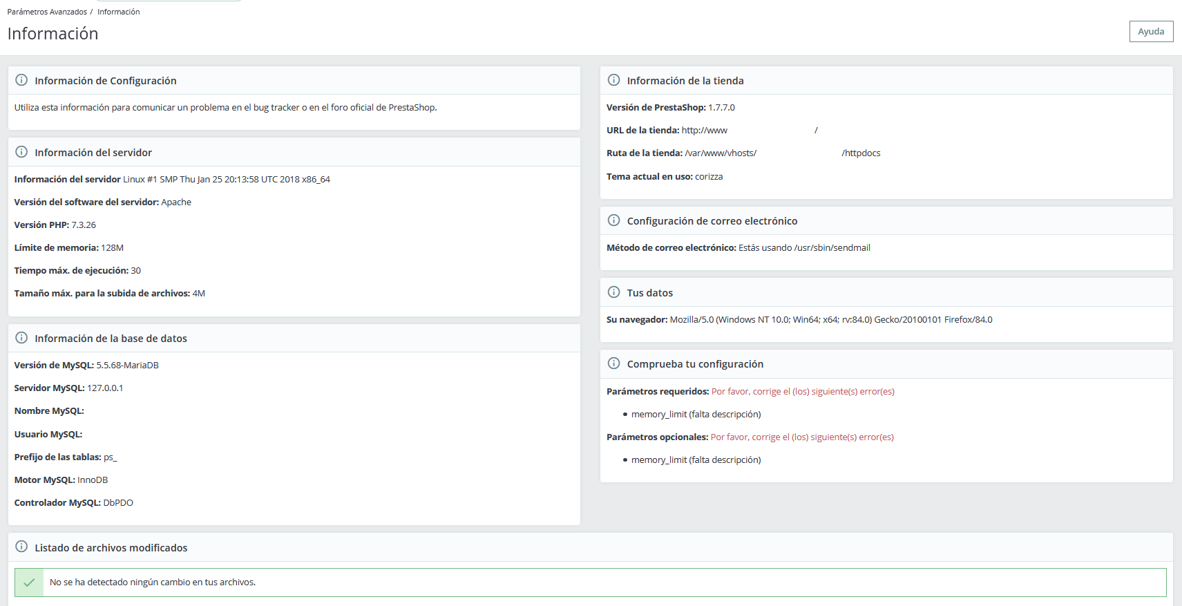 La página nos mostrará qué configuraciones tiene su servidor y también el sitio.