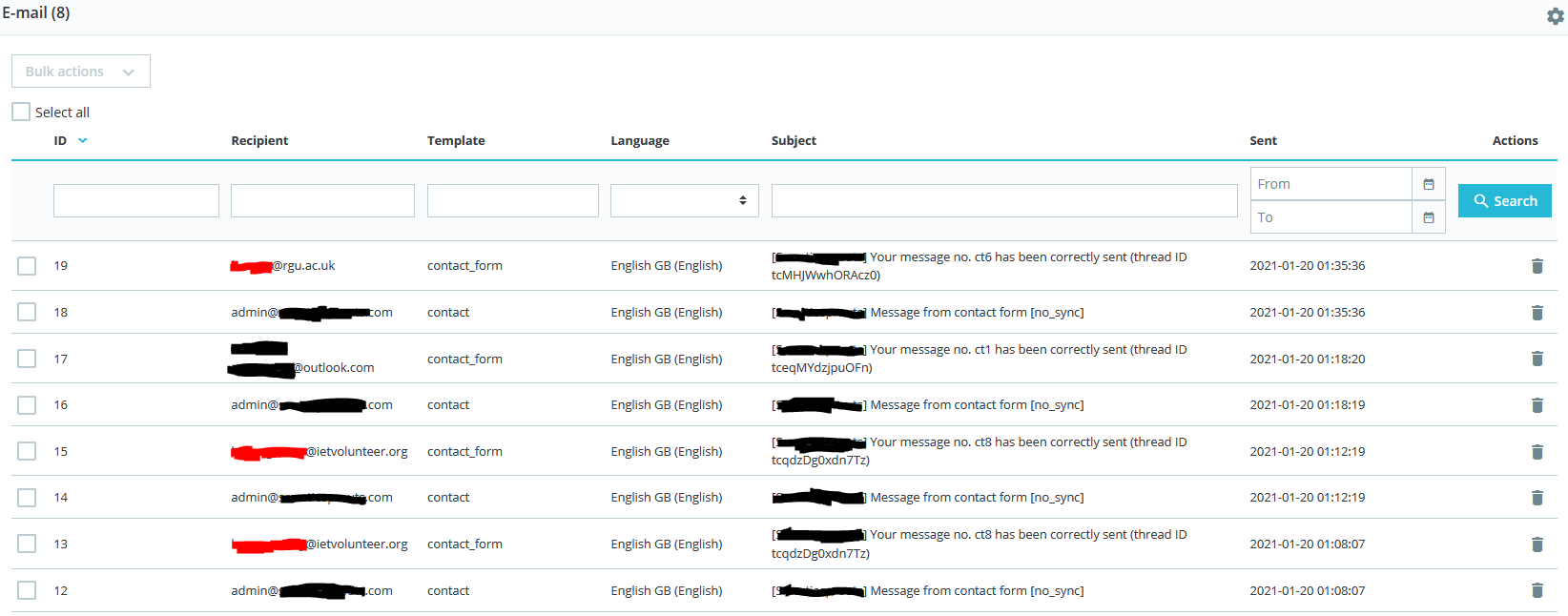 prestabee Posted January 20, 2021 Share Posted January 20, 2021 (edited) Using contact form v4.3 with prestashop v1.7 The module has been configured as follows When the form is submitted, a copy of the email is successfully received by the Customer service and Webmaster email addresses. If the sender's email is not from an office365 domain, the sender also receives a copy of the email. I have tested this with gmail.com, outlook.com, mail.com etc. If the sender's email is from an office365 domain e.g. .ac.uk domains, a copy of the email is neither received in the inbox nor spam eventhough the backoffice email log shows that this has been sent. (The ones highlighted in red were never received) When using the test email functionality, emails to office365 accounts are received successfully as shown below Edited January 20, 2021 by prestabee (see edit history) Link to comment Share on other sites More sharing options...