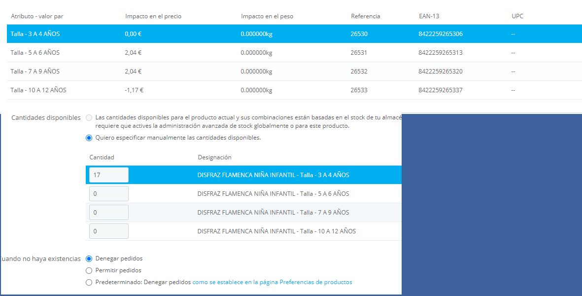 This product has 4 combinations and only the main has quantity>0 but only are showed combinations with quantity=0