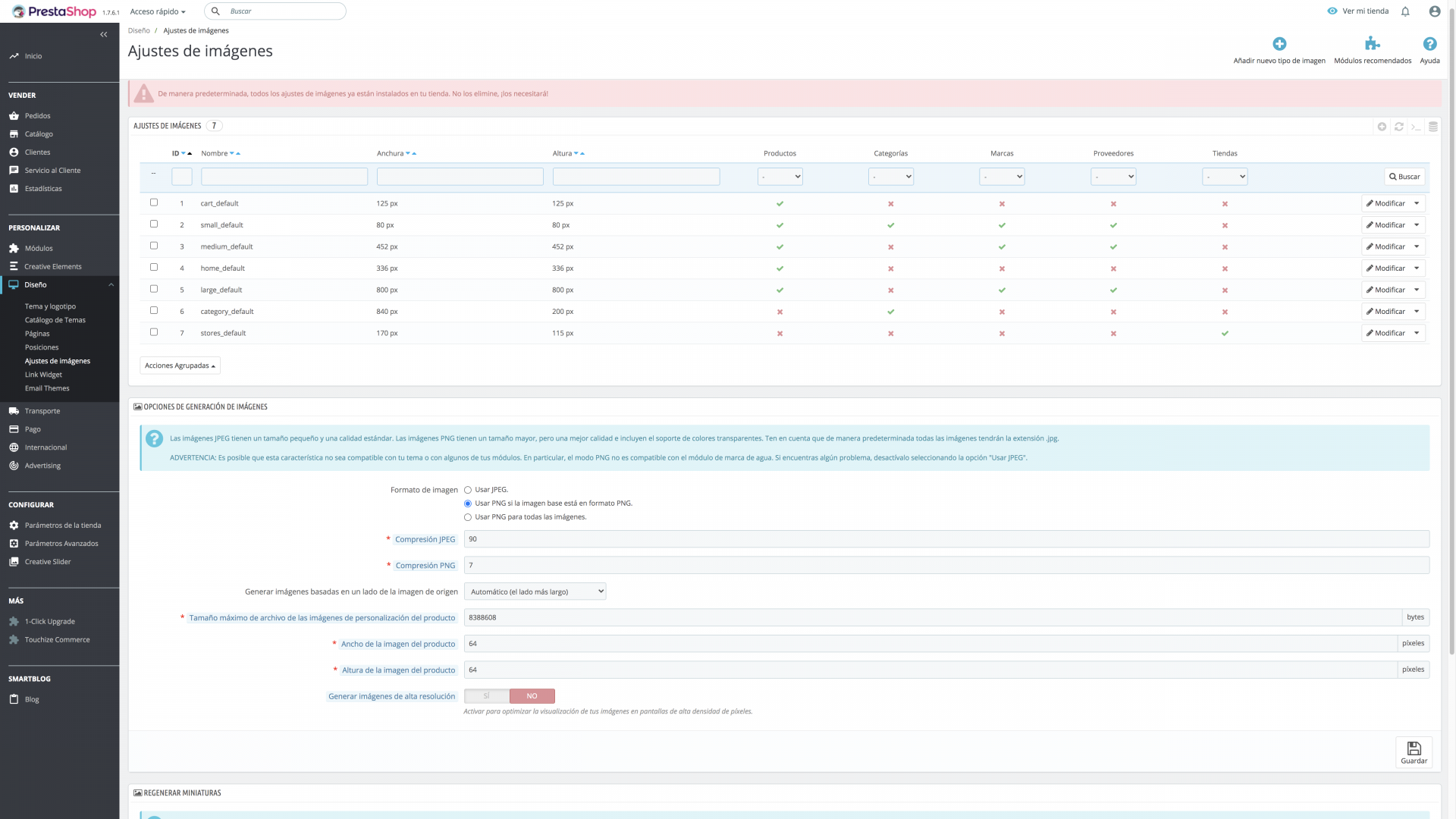 He estado indagando un poco y creo que se realizan los cambios desde diseño>Ajustes de imágenes pero me da bastante miedo tocar algo y liarla la verdad y no sé exactamente bien lo que significa lo de regenerar miniaturas, adjunto captura de la configuración actual.