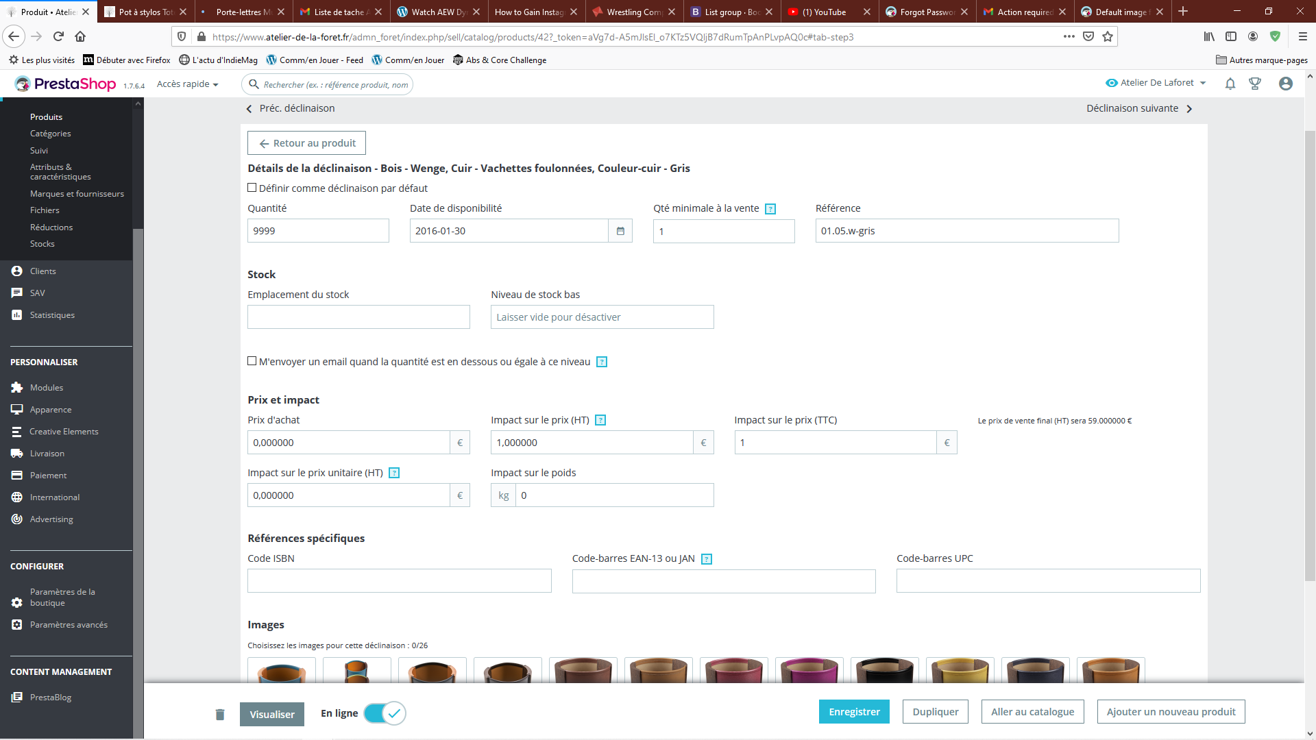 asabry Posted January 22, 2021 Author Share Posted January 22, 2021 My issue is that when for a Combination you do not select one image, it picks all for that product. By default, it chooses everyone one of them. But for "Gris" which don't have any one of them on the back office (image down below), it shows all of them. And that's what I wanna avoid since it makes all the clients into confusion. I'm completely lost about that issue for a long time. Link to comment Share on other sites More sharing options...