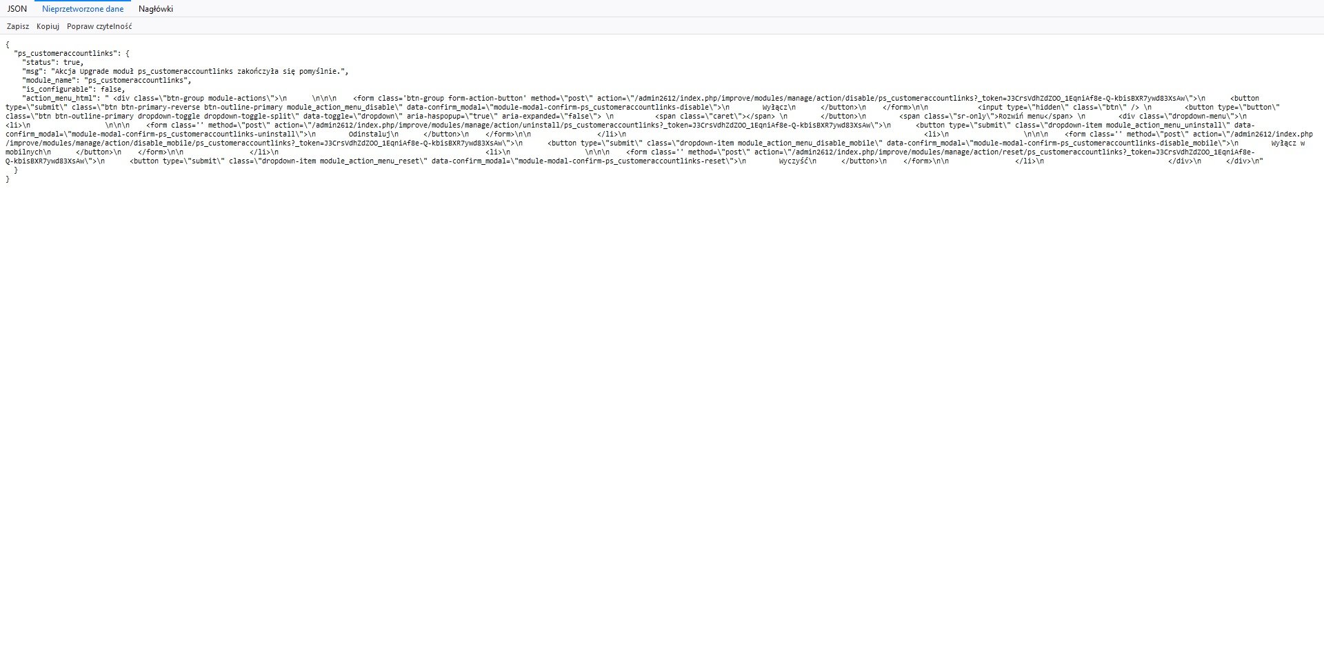 Aktualizacja przeszła prawidłowo z wersji 1.7.6.9 do 1.7.7.0 natomiast zaplecze nie do końca funkcjonuje prawidło, tzn. nie można załadować żadnego modułu, nie można dodać specyficznej ceny bo przycisk Zastosuj nie reaguje, tak samo zresztą nie reaguje przycisk dodawania modułu w BO, na karcie produktu nie widać ceny brutto a podczas aktualizacji danego modułu - wywala problem (fot. zał.). Fron Offcie działa prawidłowo a bynajmniej nie zauważyłem żadnych problemów.