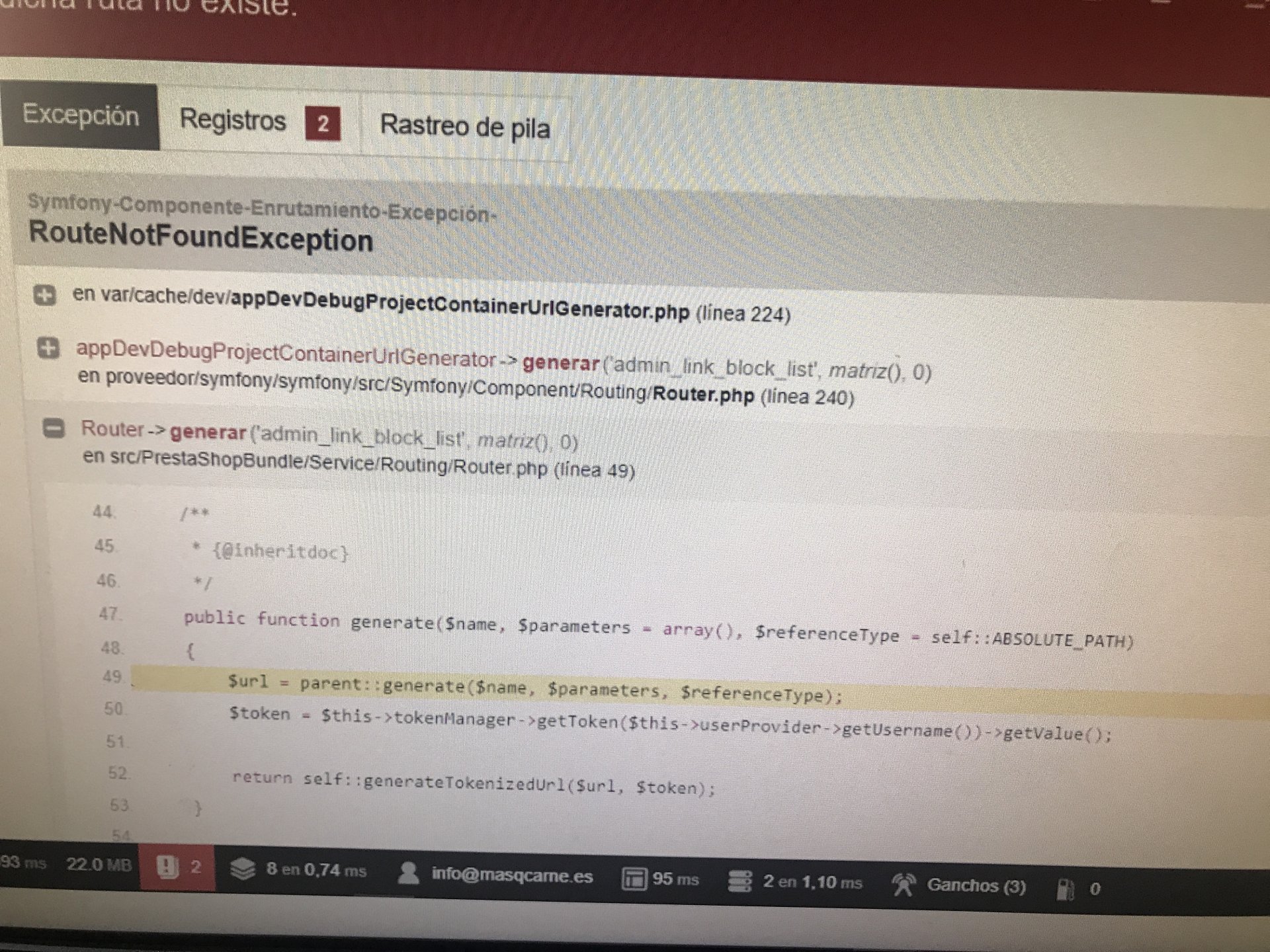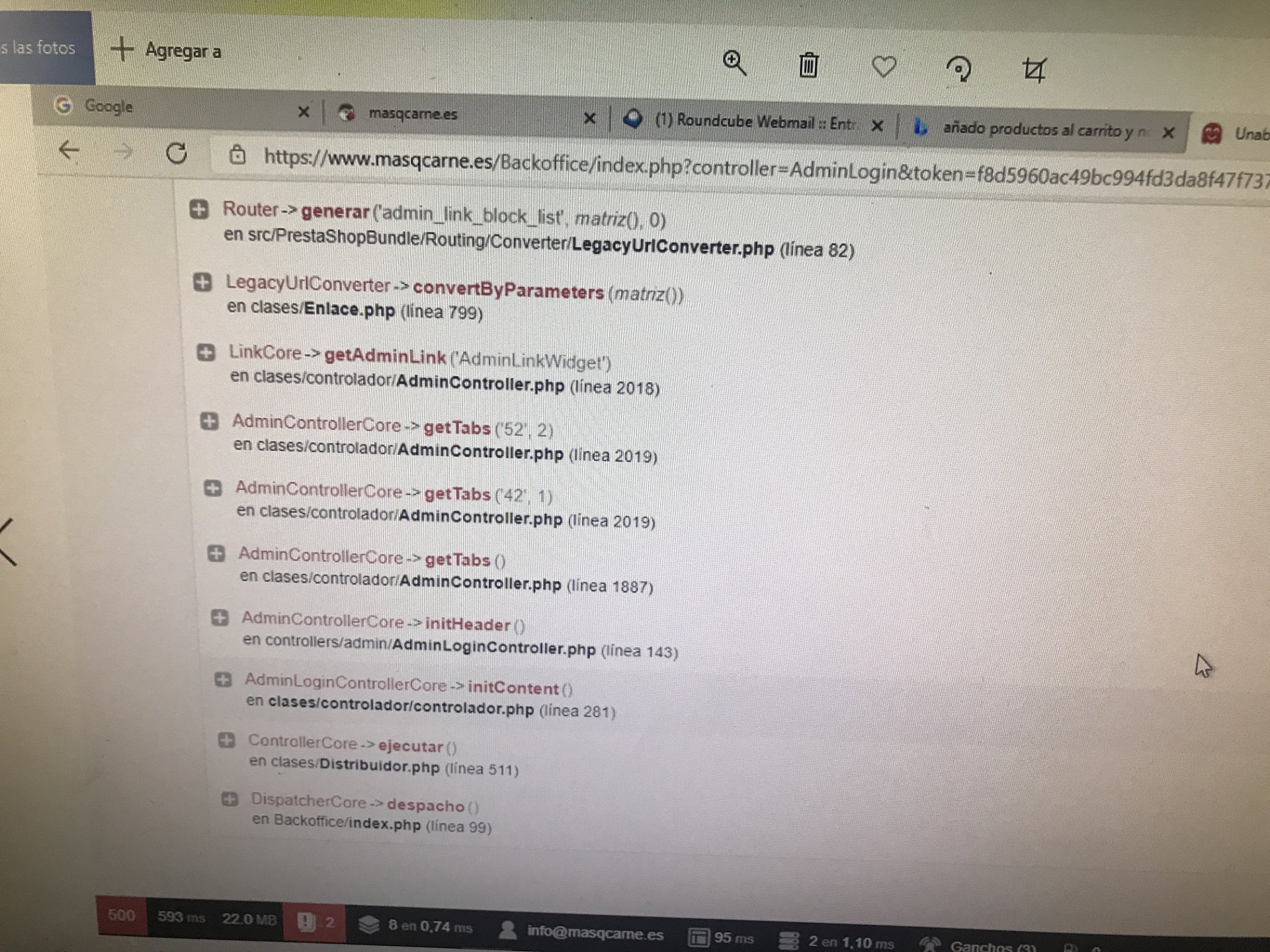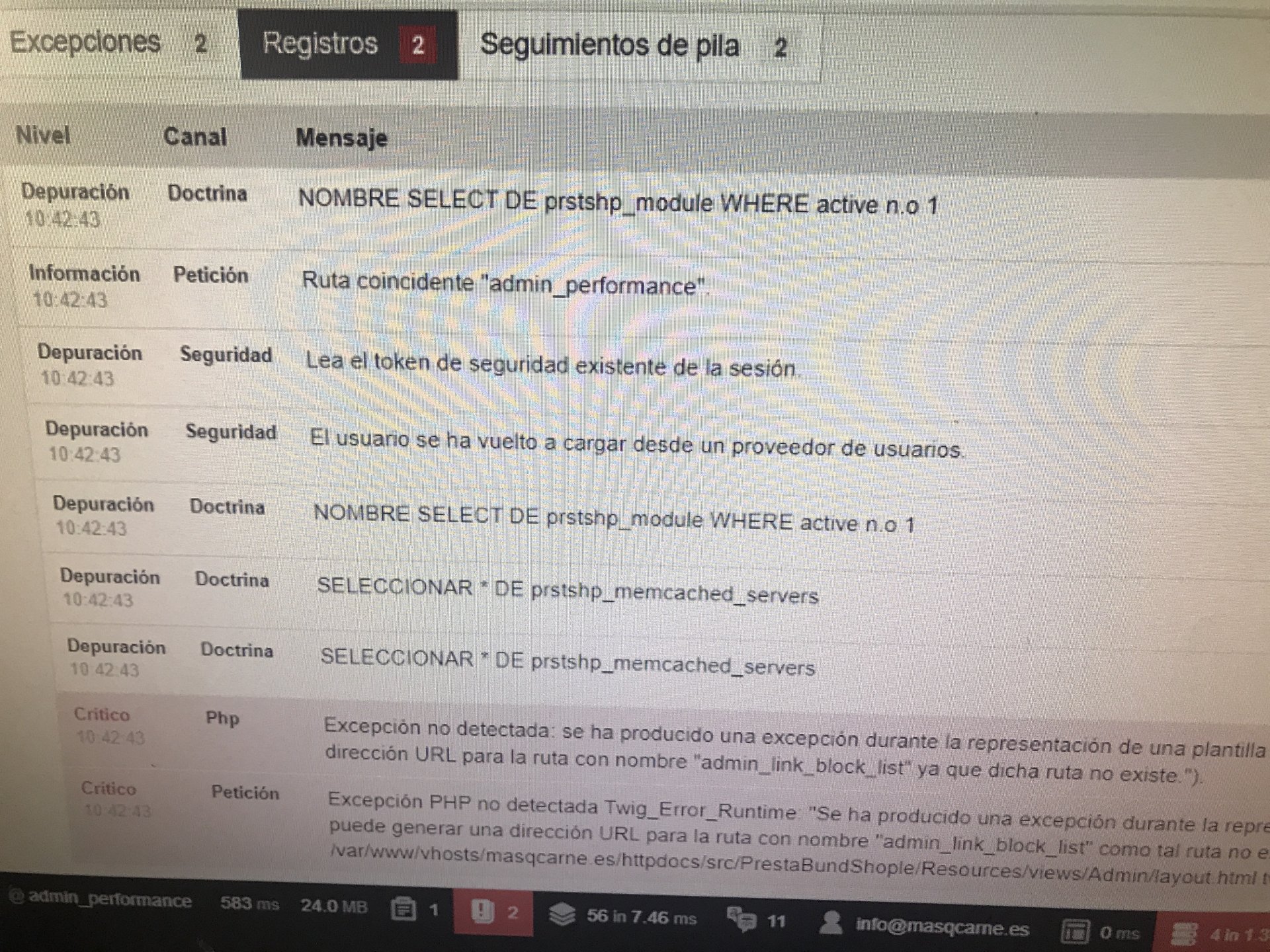 la segunda es que ahora cada vez que quiero entrar en mi Backoffice, meto las claves y me sale la pantalla de los errores, no puedo salir de ella y desactivar el modo depuración, así como poder trabajar dentro del Backoffice. ¿como puedo salir de ella?