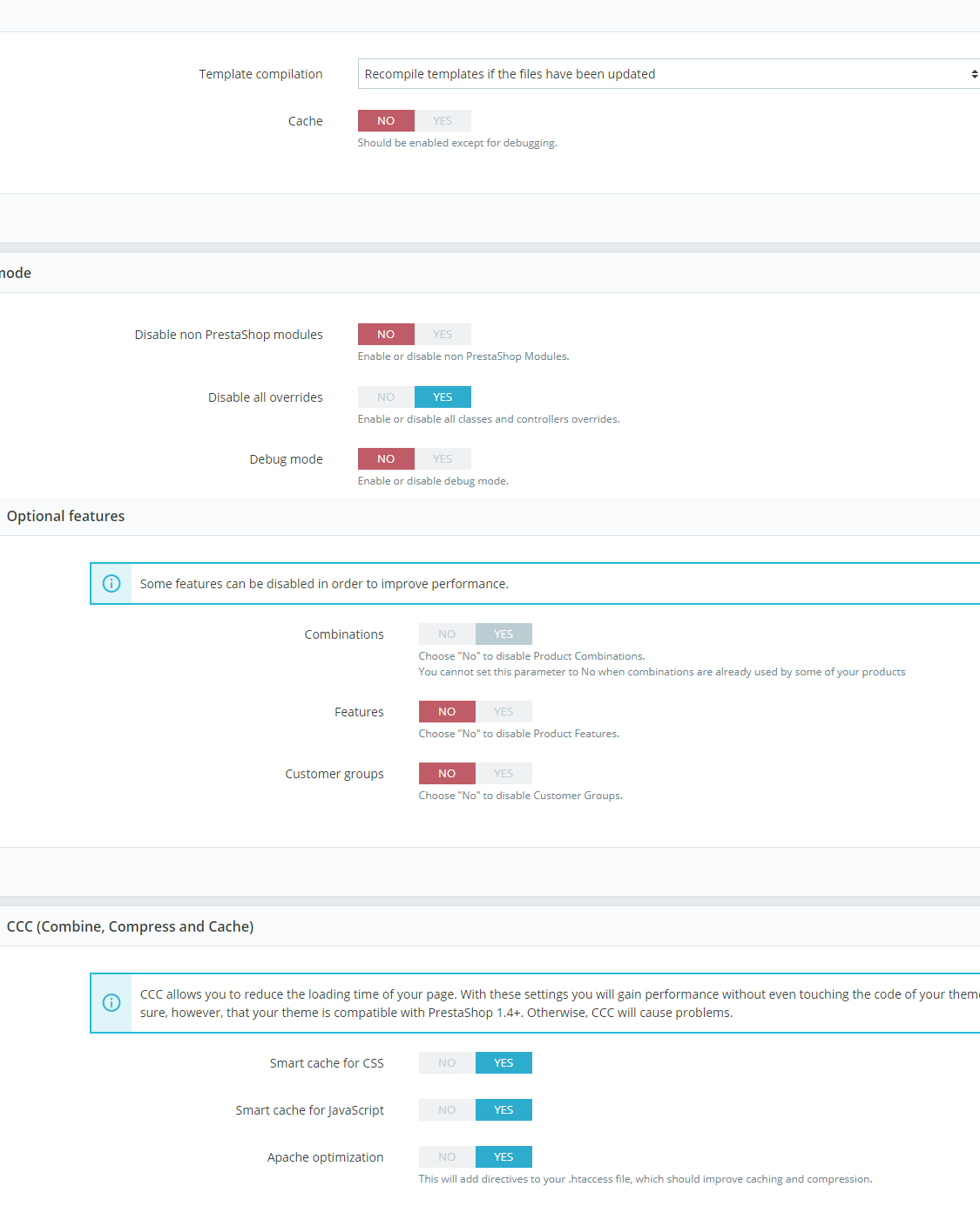 jetway Posted February 1, 2021 Share Posted February 1, 2021 (edited) Hi, is it your intention to disable all overrides? An Url Cleaner, for example, will not work or any modules that do overrides. Are you sure your theme and Modules work properly with Smart Cache for CSS, Smart Cache for Javascript, and Apache Optimization activated? If you're having issues with Javascript not being loaded, I would disable the smart cache for Javascript and see what the behavior is. Edited February 1, 2021 by jetway (see edit history) Link to comment Share on other sites More sharing options...
