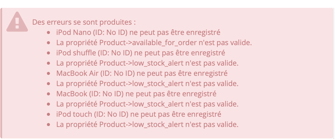sirop Posted January 30, 2021 Share Posted January 30, 2021 (edited) Bonjour, Je viens d'installer un PrestaShop tout neuf (1.7.7.1 sous php 7.1) Aucun soucis d'installation, tout va pour le mieux... Sauf que j'ai voulu tester l'import CSV de produits, et là ça coince Après avoir passé du temps rien n'y fait, message d'erreur laconique ( voir image) le fichier csv n'est pas en cause car j'ai même testé avec un fichier d'example de Prestashop Je tourne en rond sévère même si j'ai parcouru le forum pour essayer de trouver une réponse en vain. Sinon pour l'instant cette version de Prestashop semble me convenir. Merci de m'aider Cordialement Edited January 30, 2021 by sirop (see edit history) Link to comment Share on other sites More sharing options...